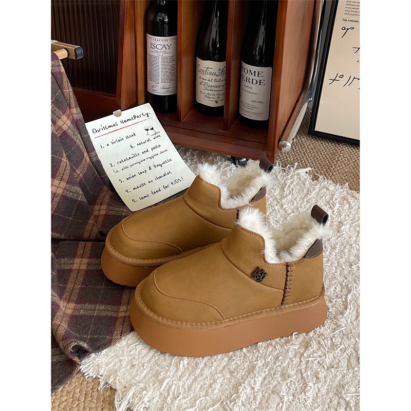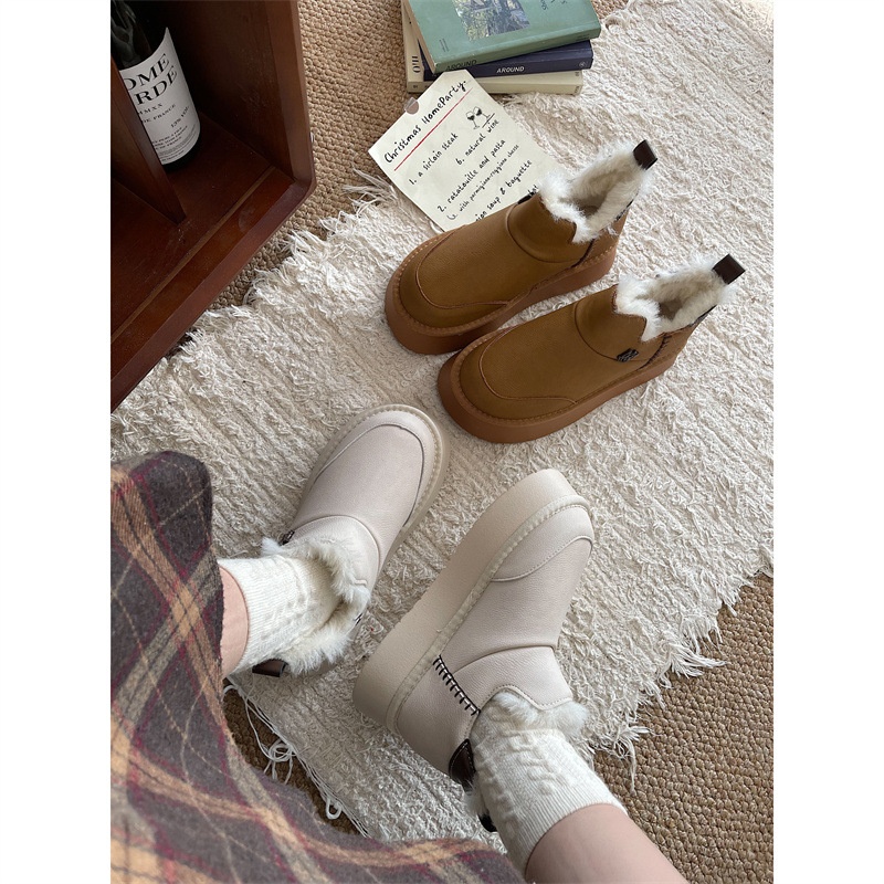 Warm And Non-slip Thick-soled Snow Boots For Women In Winter Online Celebrity Plus Velvet Thickened One-foot White Cotton Shoes