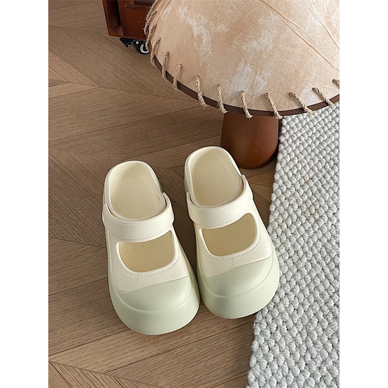 Casual Online Celebrity Thick-soled Height-enhancing Closed-toe Slippers For Women For Summer Outdoor Wear Anti-slip White Shit-stepping Hole Shoes