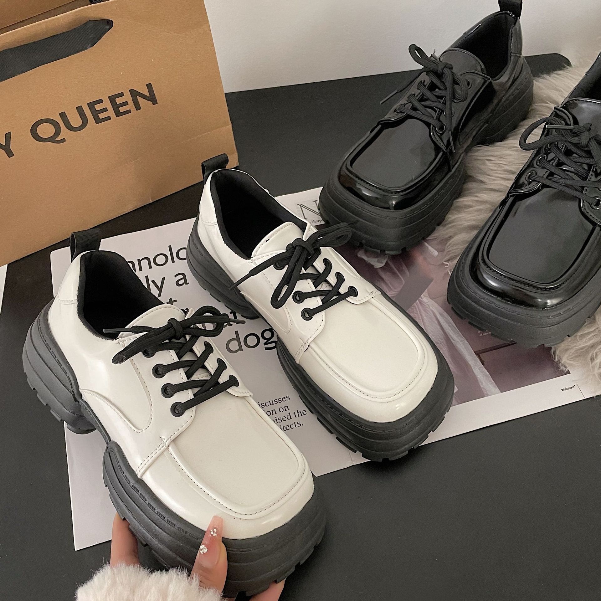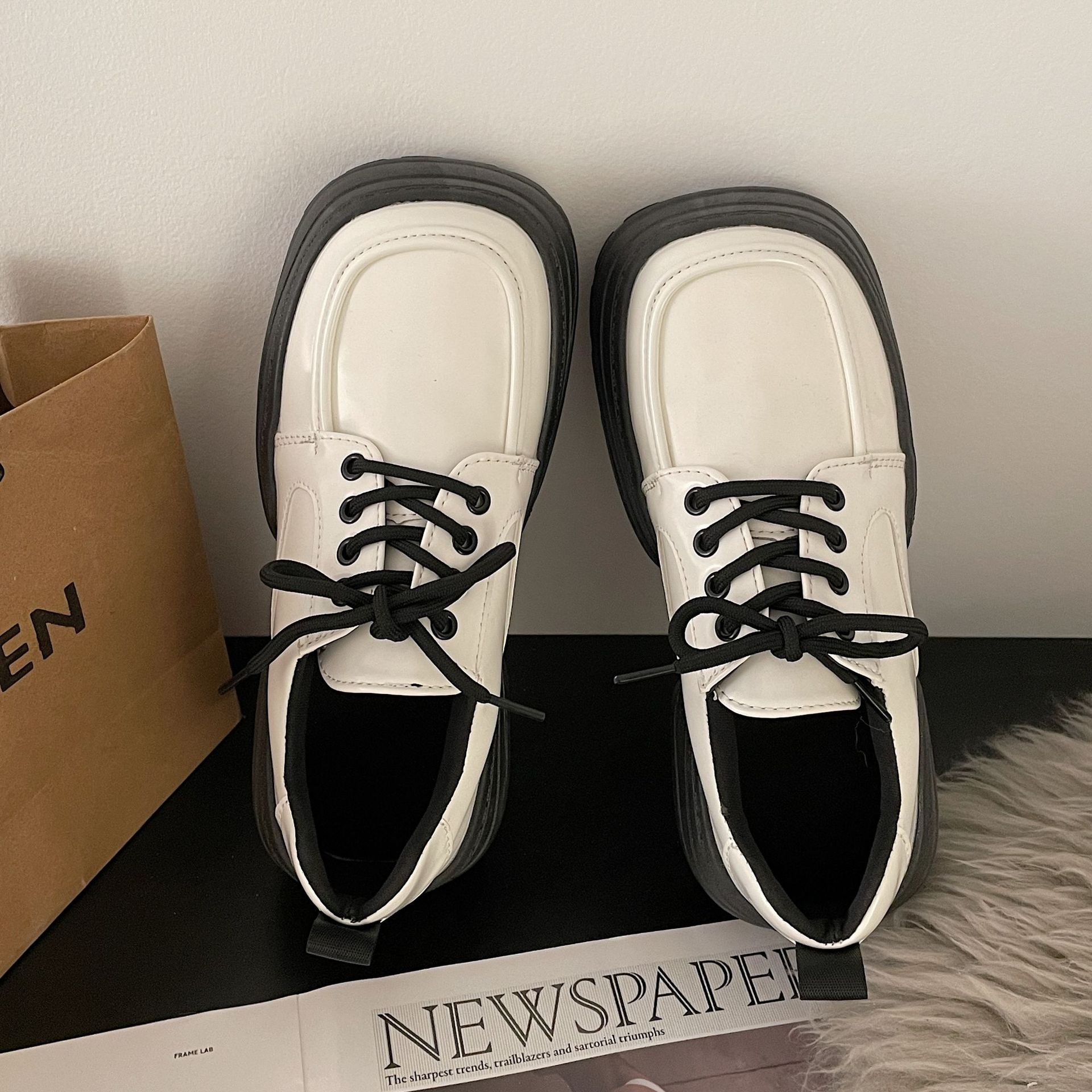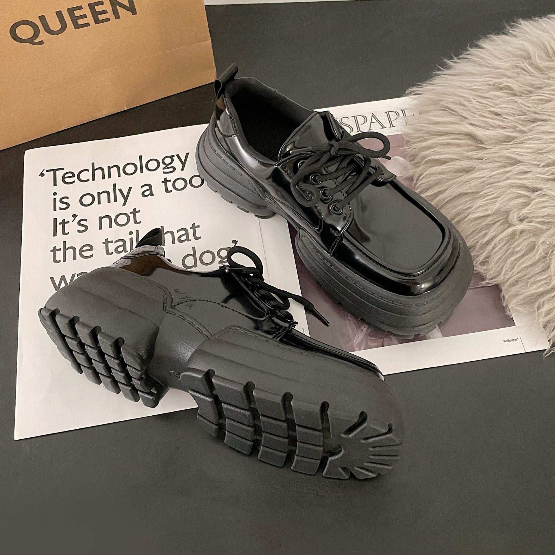 Retro British Style Spring And Autumn Big Head Small Leather Shoes For Women Thick Sole Heightening Versatile Straps Black Single Shoes