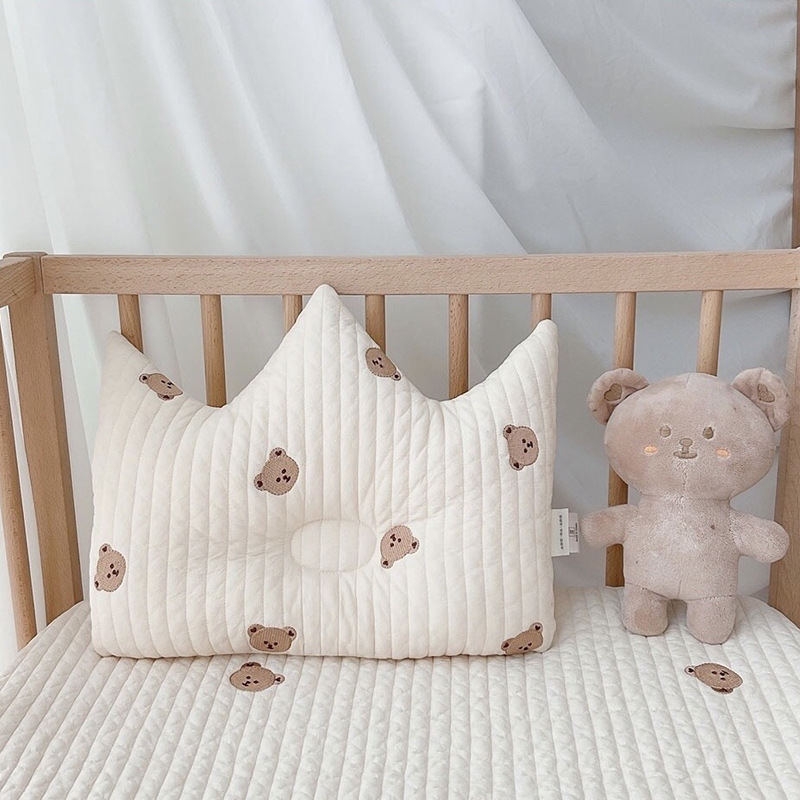 Korean Style Crown Pure Cotton Baby Pillow Animal Head Embroidered Cloud Children Sleeping Pillow Kindergarten Nap Pillow