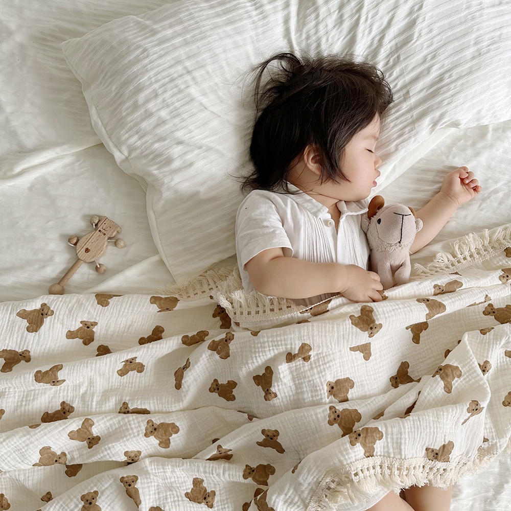 Baby Pure Cotton Blanket Bear Tassel Double Cotton Yarn Blanket Summer Air Conditioning Blanket Kindergarten Lunch Break Blanket