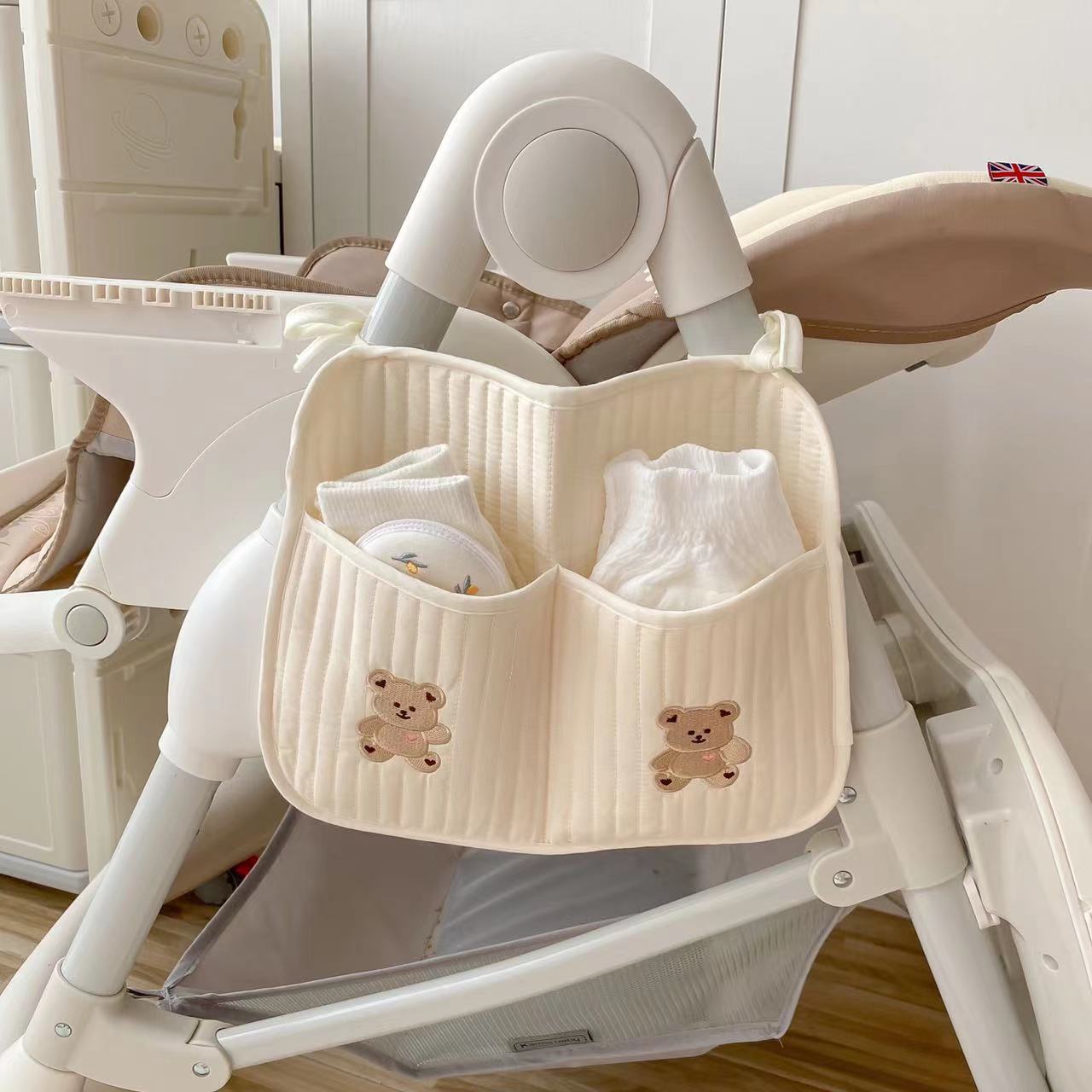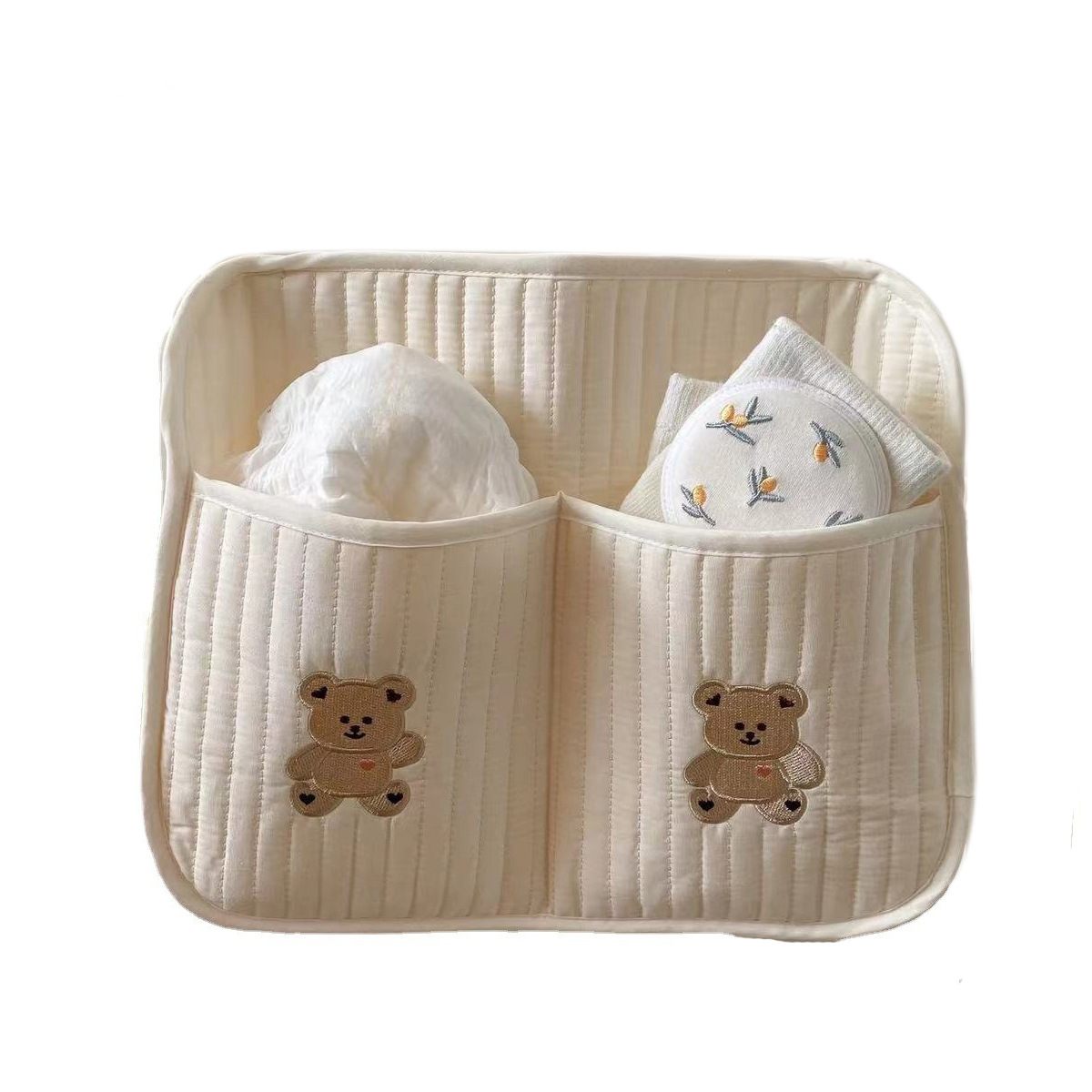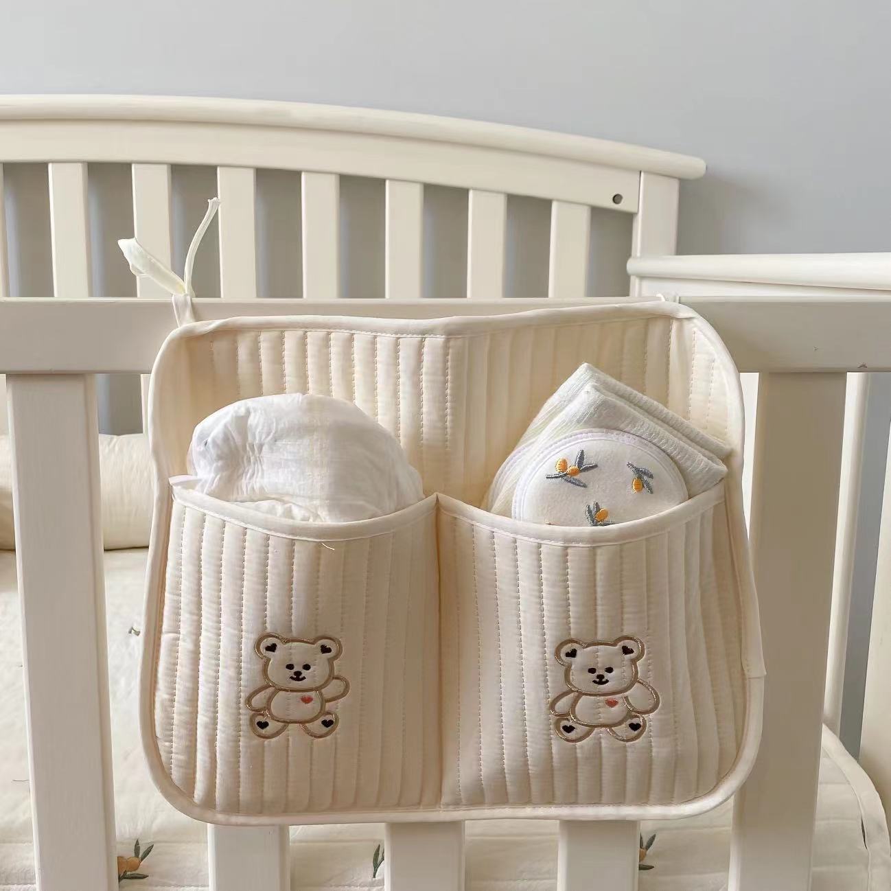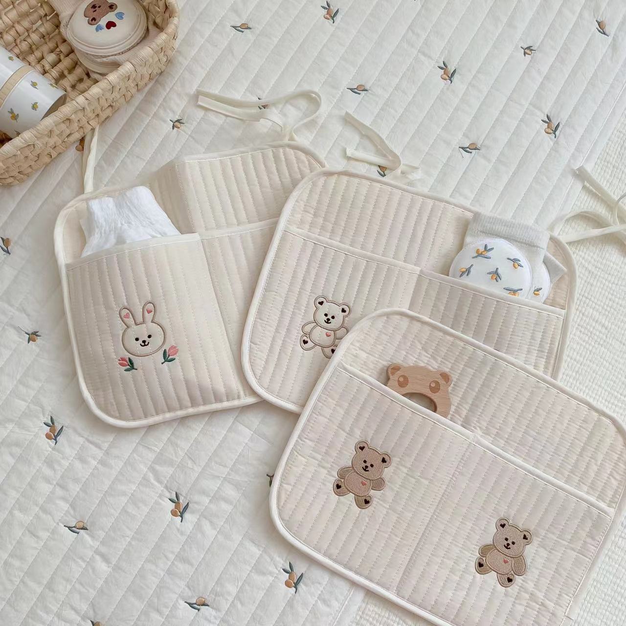 Korean Style Small Doll Storage Hanging Bag Baby Stroller Hanging Pocket Quilted Cotton Bear Embroidered Cotton Candy Pocket