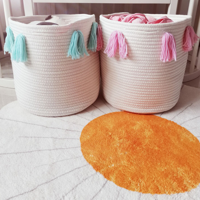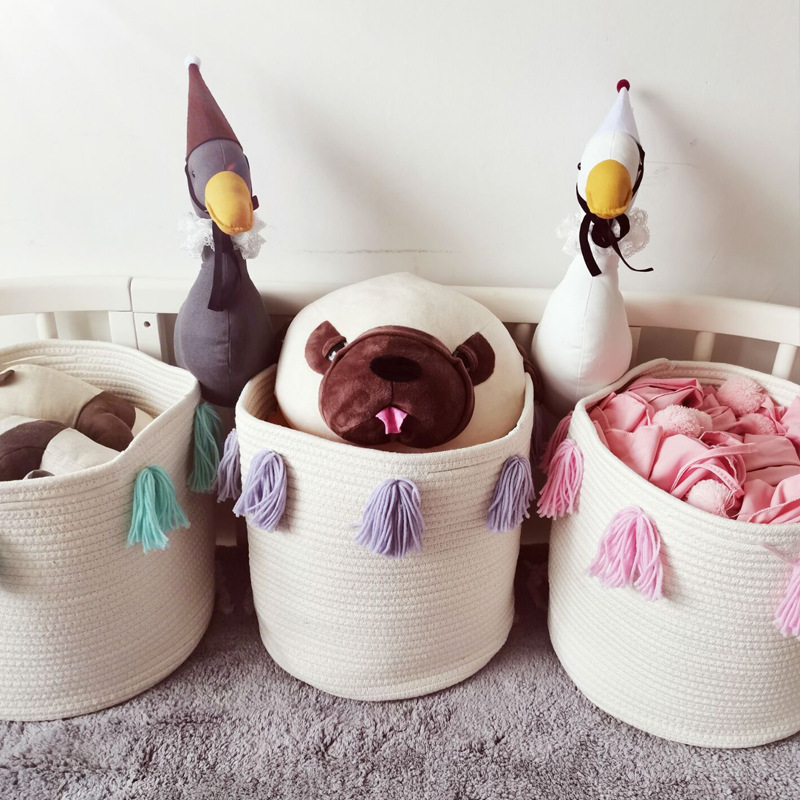 Tassel Cotton Rope Woven Children's Toy Storage Bucket Home Storage Bucket Children's Home Photography Decoration