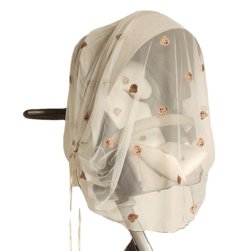 Summer Baby Stroller Lace Mosquito Net Baby Full Cover Bear Mesh Embroidery Stroller Mosquito Cover