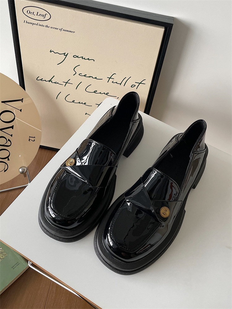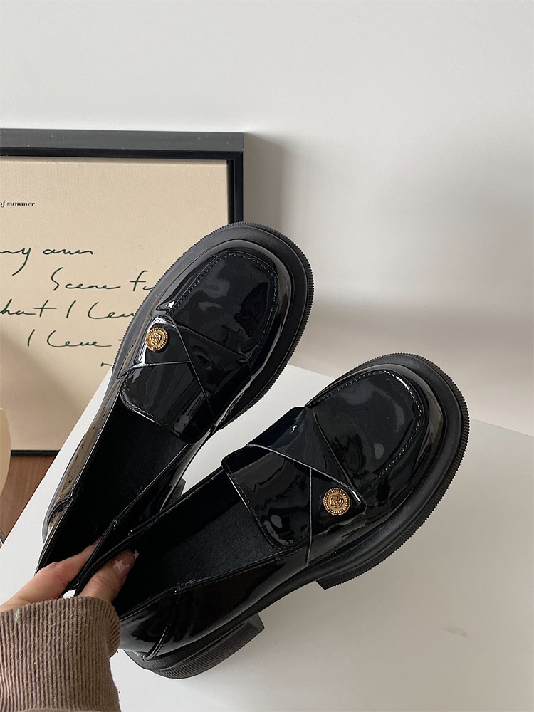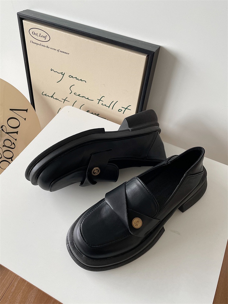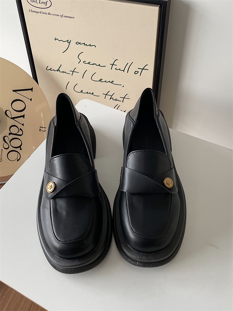 Jinmi Small Gold Coin Thick-soled Lazy Thick-heeled Loafers For Women Small Leather Shoes For Women Retro Single Shoes For Women