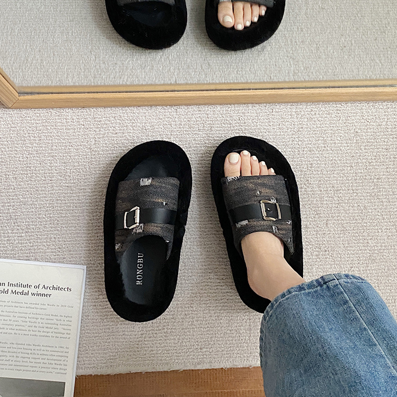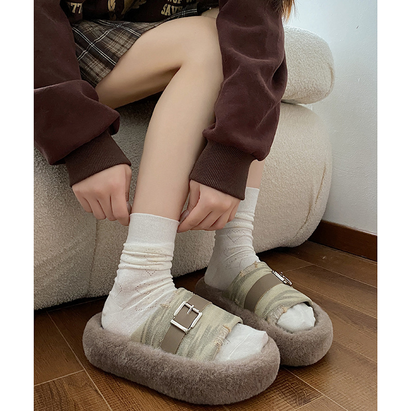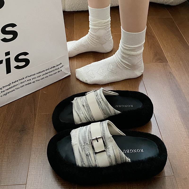 Internet Celebrity Hit Thick-soled Fur Slippers For Women To Wear As Outerwear In Autumn And Winter High-end Anti-slip Cotton Slippers
