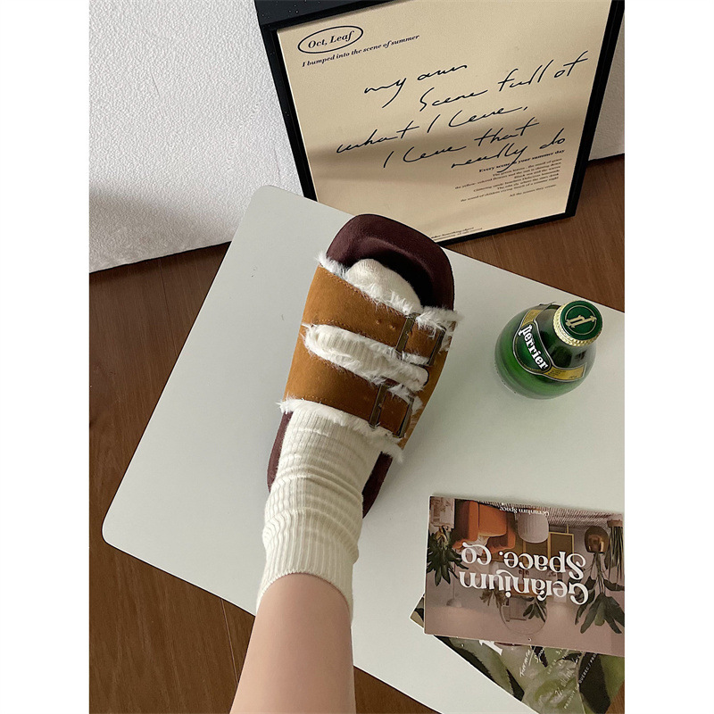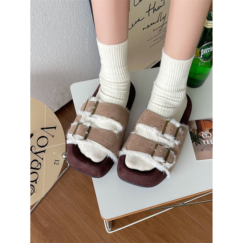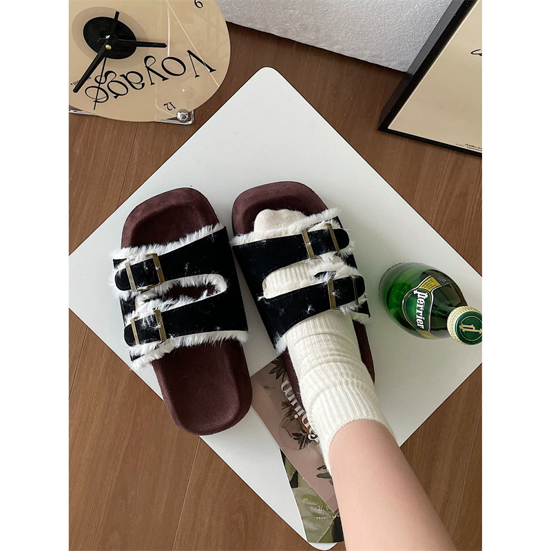 Internet Celebrity Thick-soled Fur Slippers For Women To Wear Outside Autumn And Winter Non-slip Super Popular Fashion Home Cotton Slippers
