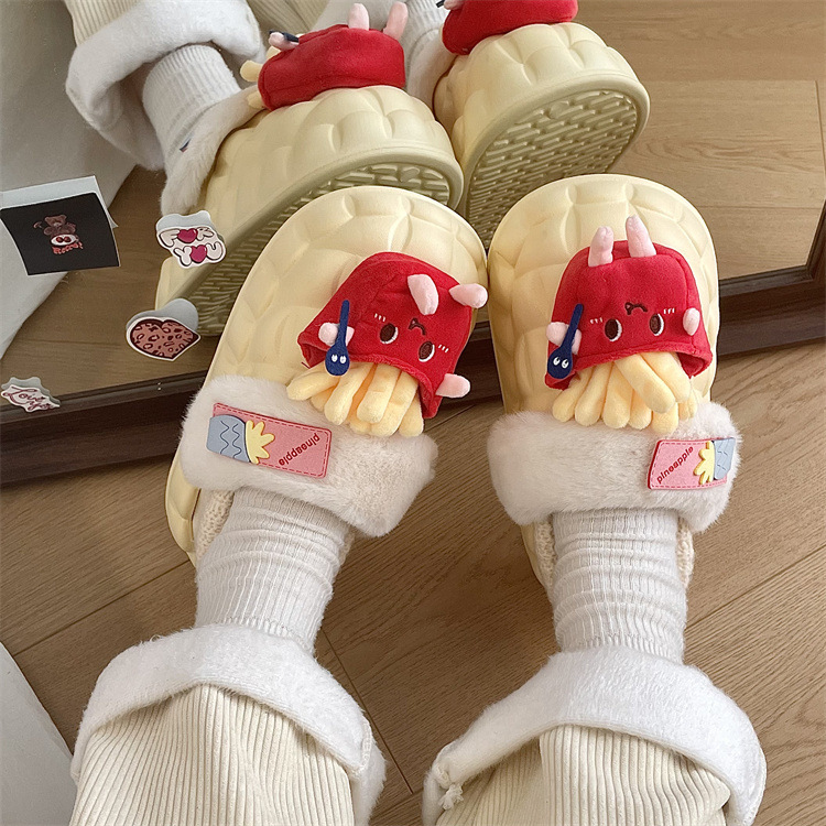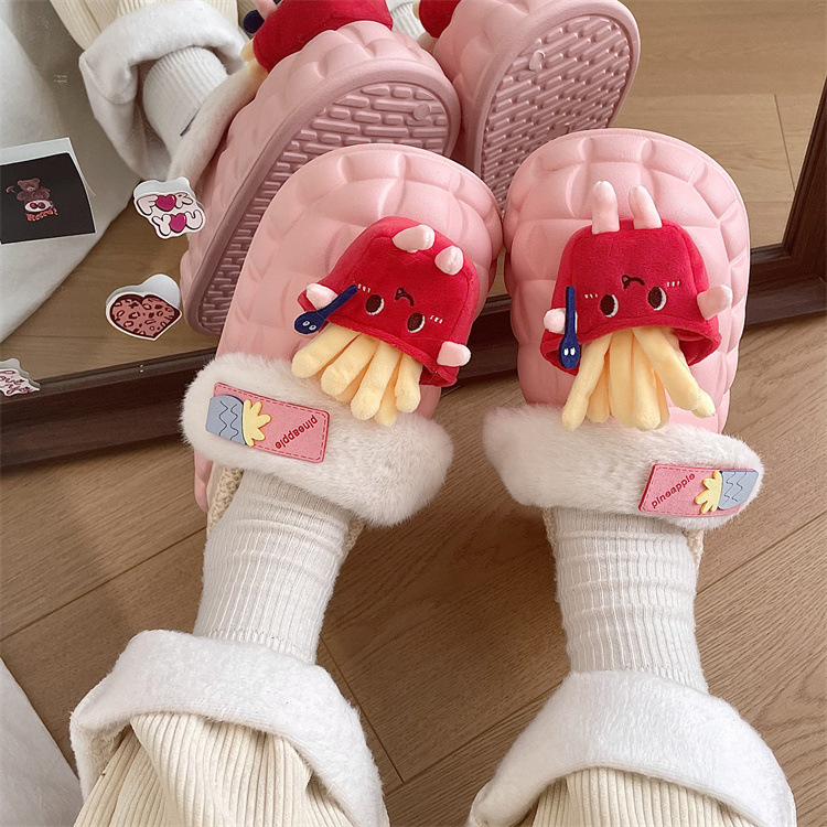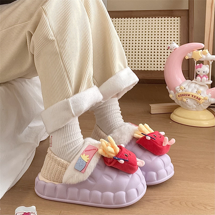 Warm And Feces-feeling Fur Shoes For Women,Fashionable And Wearable,Winter Bread Cotton Shoes,Cute Milk Fufu Cotton Slippers