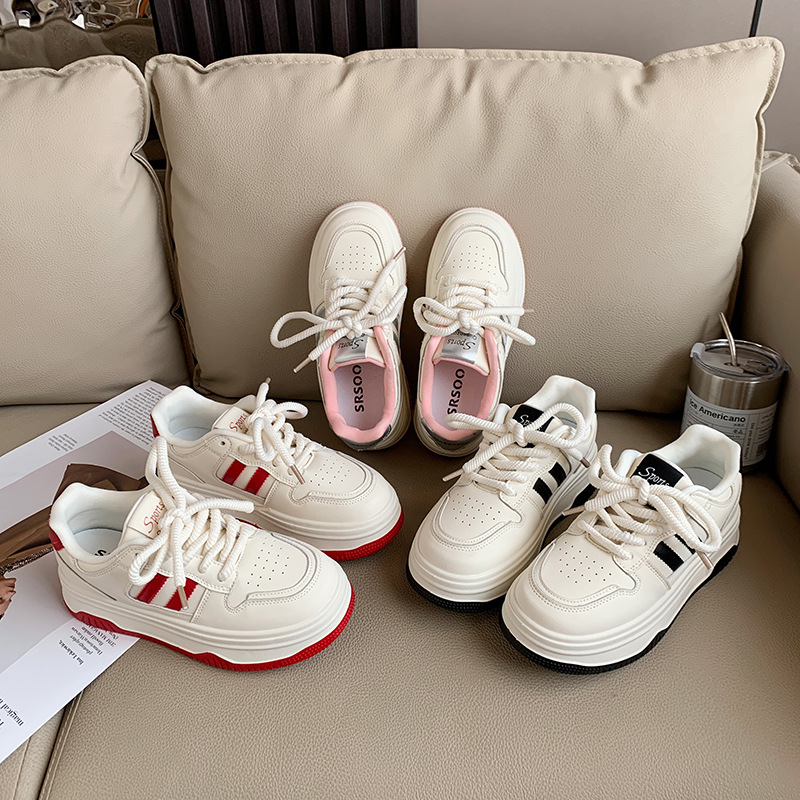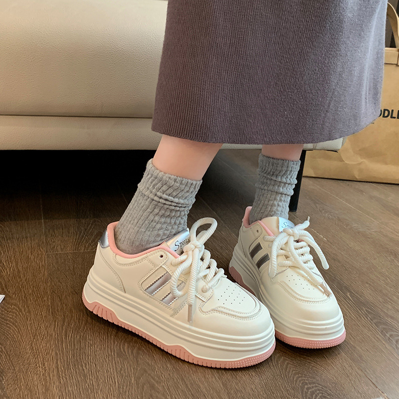 Casual All-match High-end Height-enhancing Thick-soled Student White Shoes For Women Spring And Autumn Retro Lightweight Sports Shoes