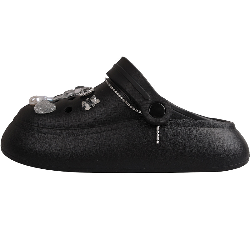 Hot-selling Online Celebrity Black Thick-soled Closed-toe Slippers For Women For Summer Outdoor Wear Style Shit-feeling Non-slip Hole Shoes