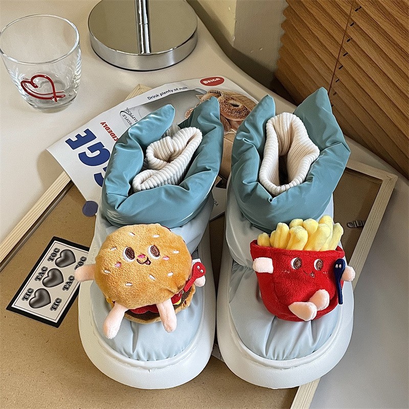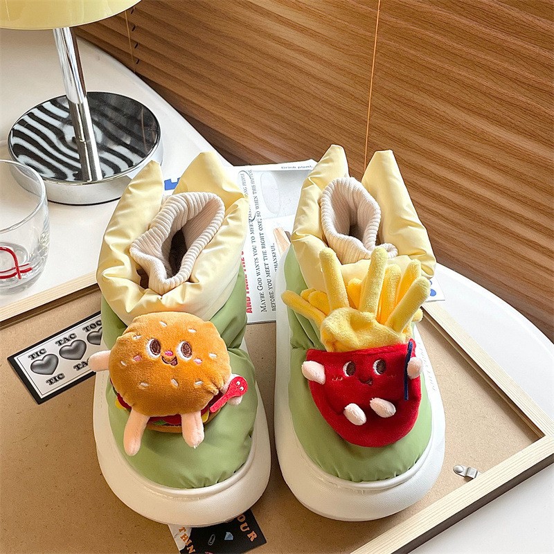 Cute French Fries Hamburger Snow Boots Non-slip Thick-soled Snow Boots Women Velvet Thickened Bread Cotton Shoes
