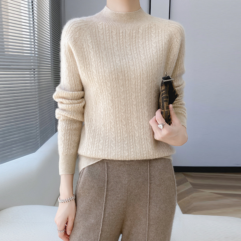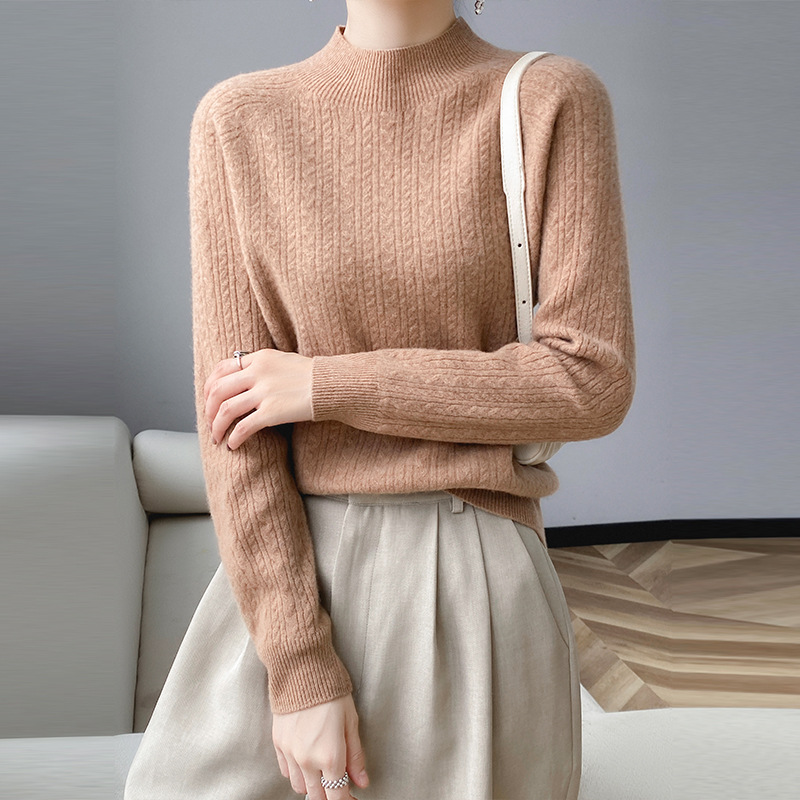 Wool Sweater For Women100%Pure Wool Half Turtleneck Twist Thickened Autumn And Winter Style First-line Ready-to-wear Knitted Bottoming Sweater