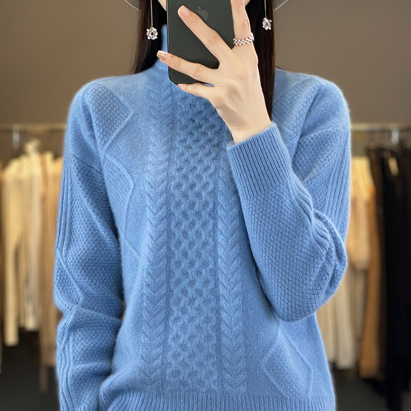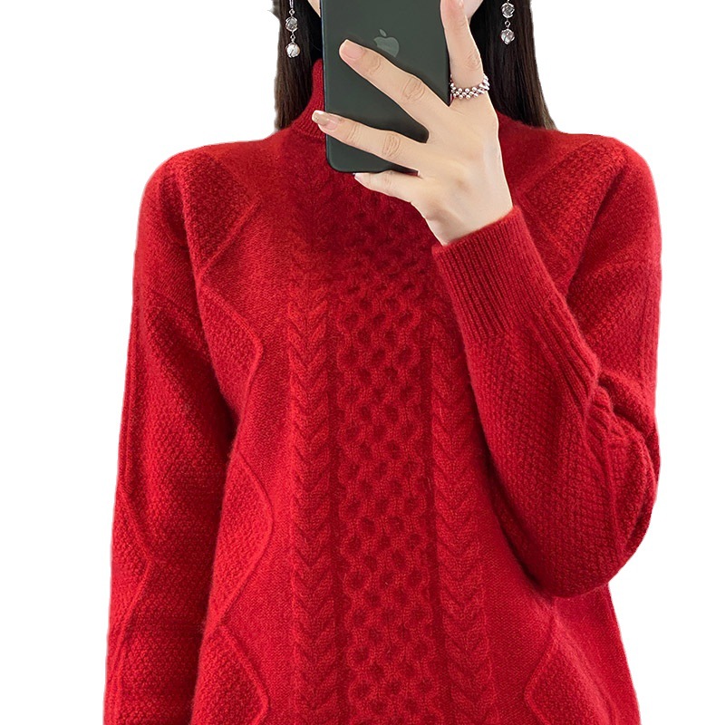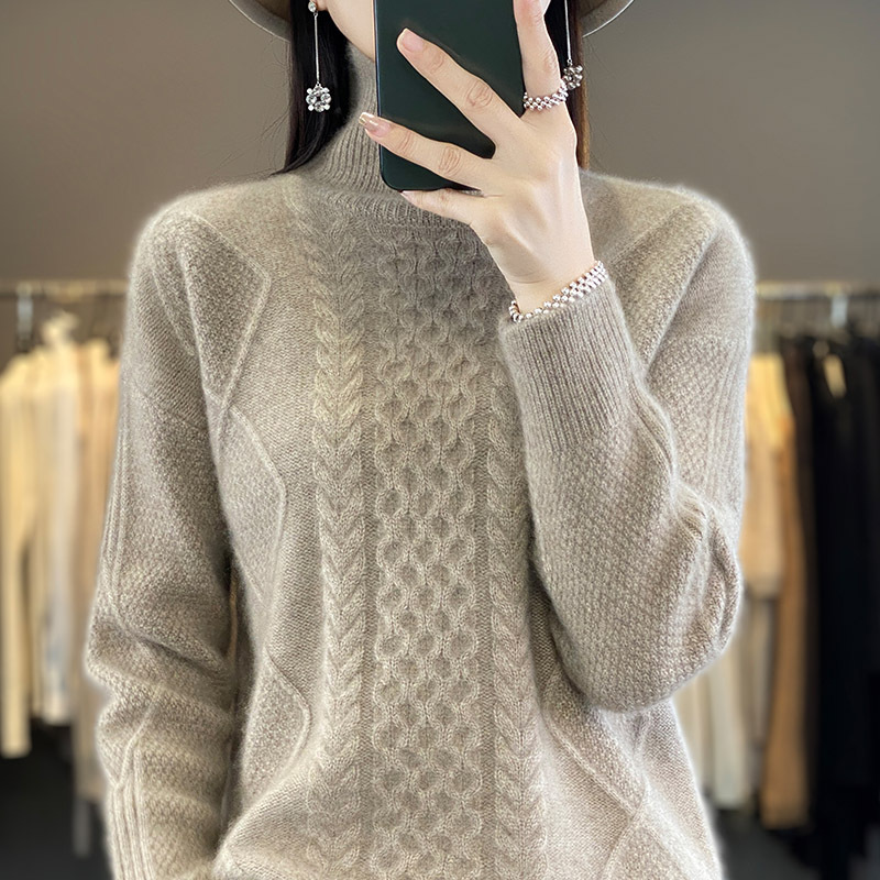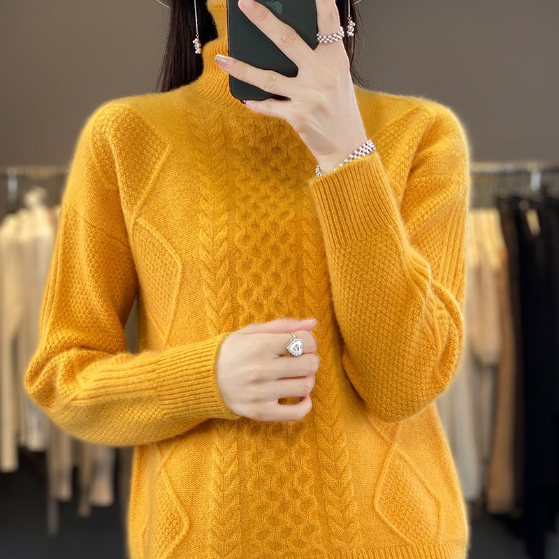 Heavy23 Autumn And Winter Thick Cashmere Sweater Women's Knitted High Collar Twisted Flower Wool Sweater Bottoming Loose Versatile