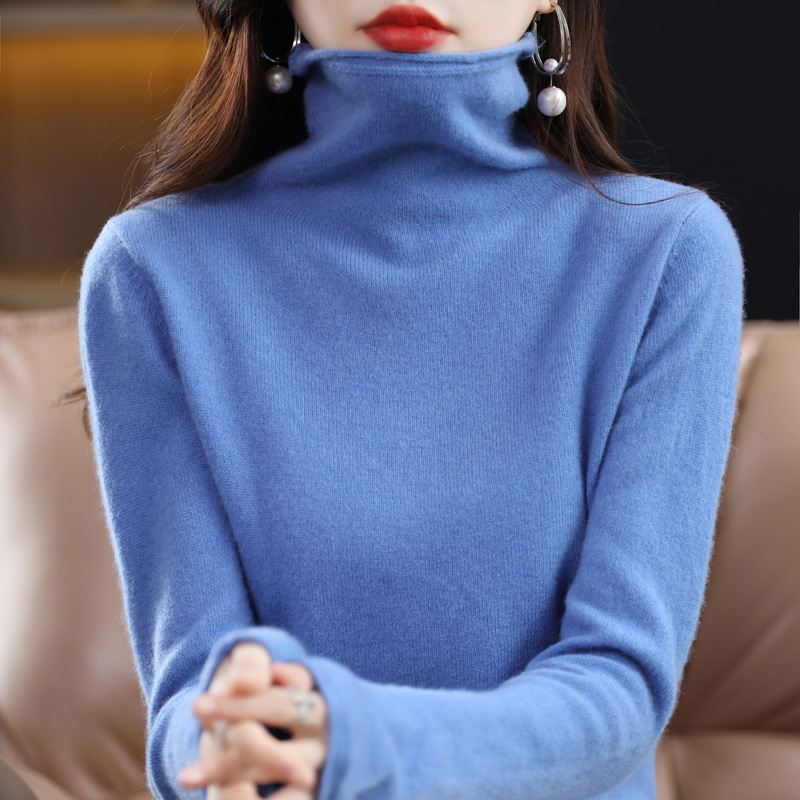 Pile Collar100 Wool Sweater Women Autumn And Winter Loose High Collar Knitted Wool Bottoming Shirt Korean Version Sweater