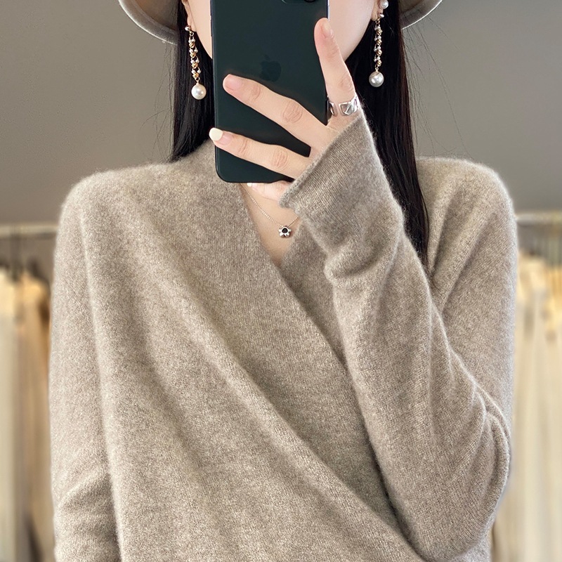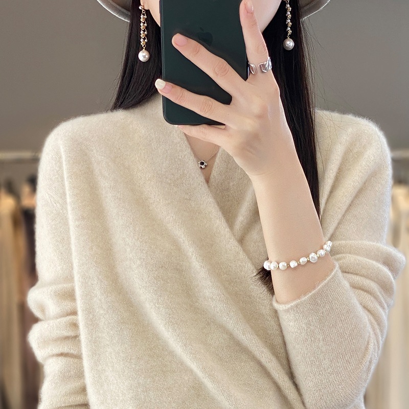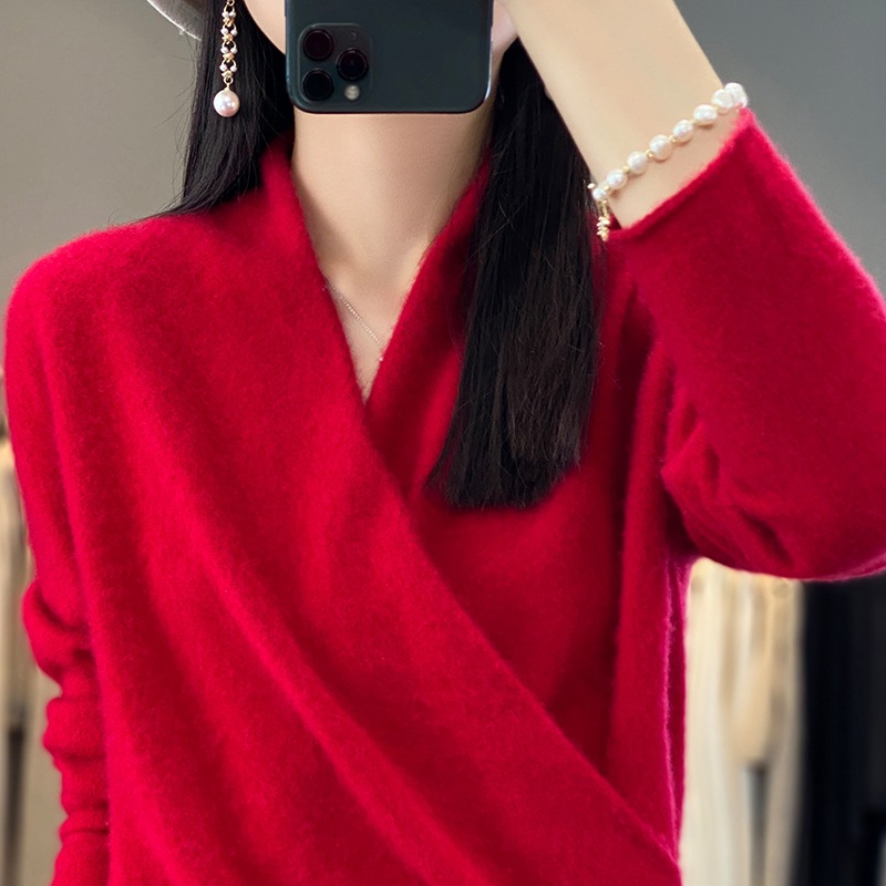 Cross V-neck Wool Sweater For Women Autumn And Winter Women's Fashion Wool Knitted Bottoming Sweater Inner Wear