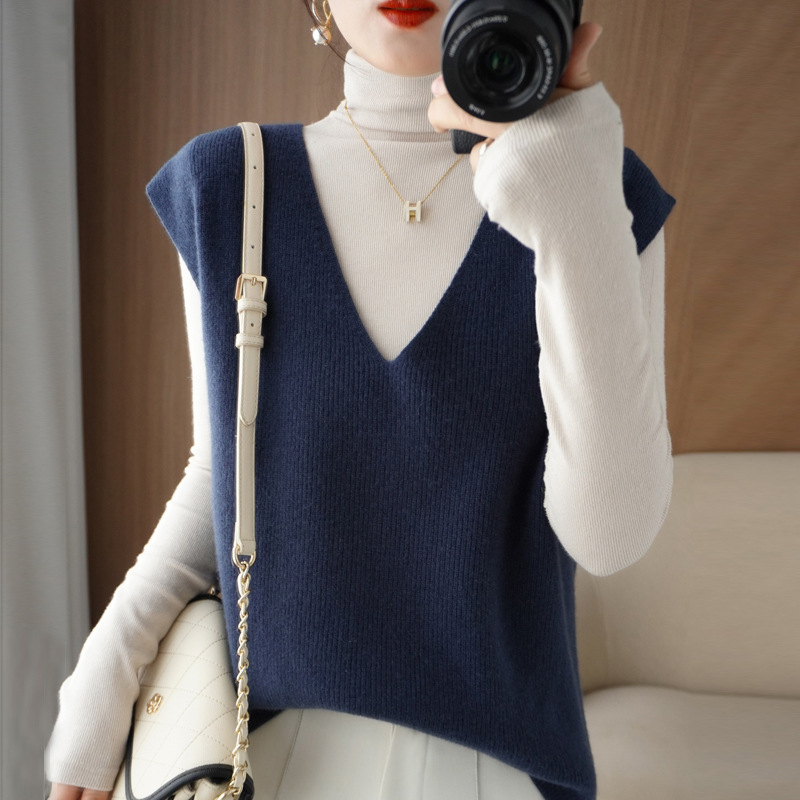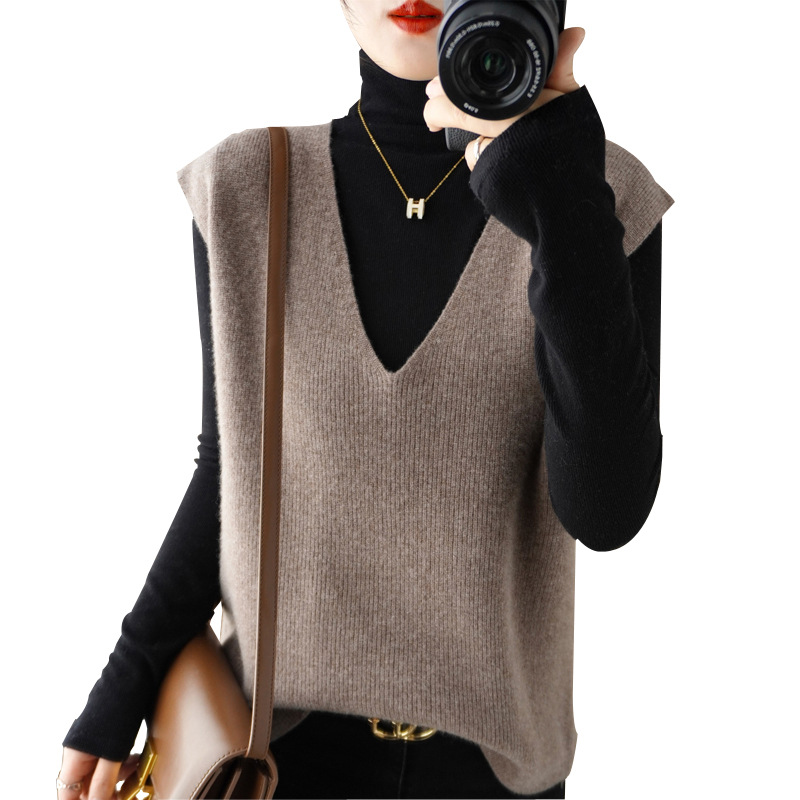 Temperament Hot Style~Knitted Vest Women's V-neck Outer Wear Spring And Autumn Loose Large Size Sleeveless Sweater Waistcoaty Slim