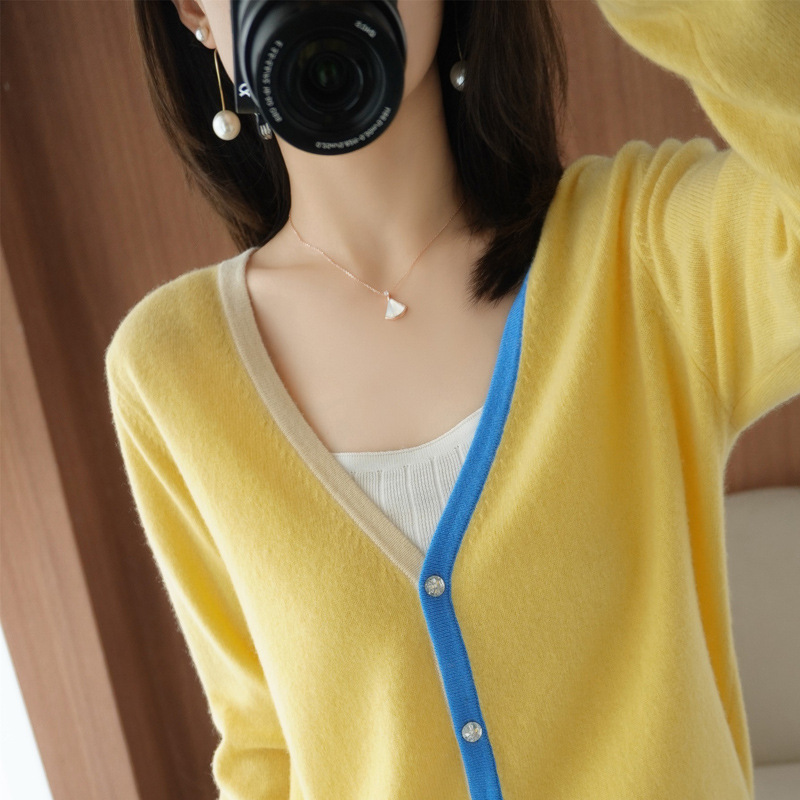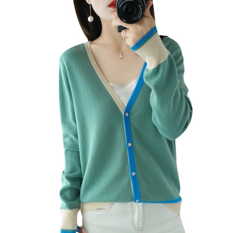 Autumn And Winter Women's Style Elegant Small Chanel Style V-neck Wool Cardigan Contrast Color Long-sleeved Knitted Cardigan Jacket For Women