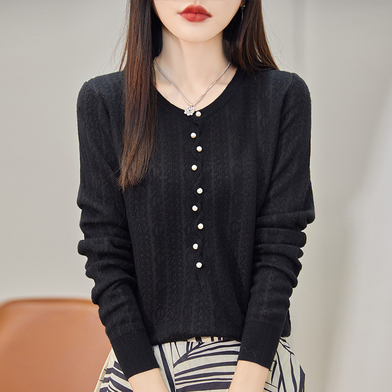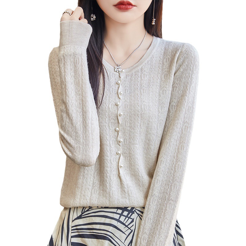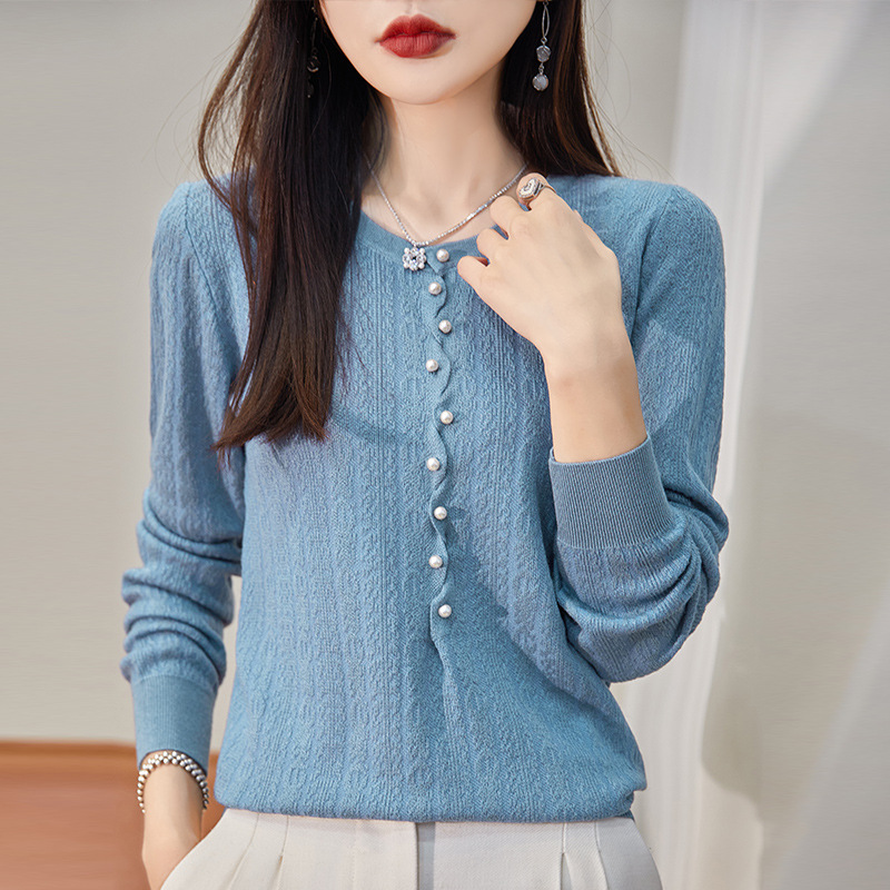 Early Autumn Style Fashionable Thin Tencel Knitted Sweater Round Neck Pullover Temperament Long Sleeve Wool Top For Women