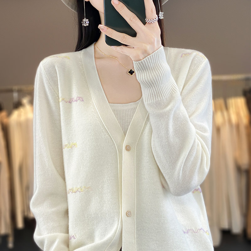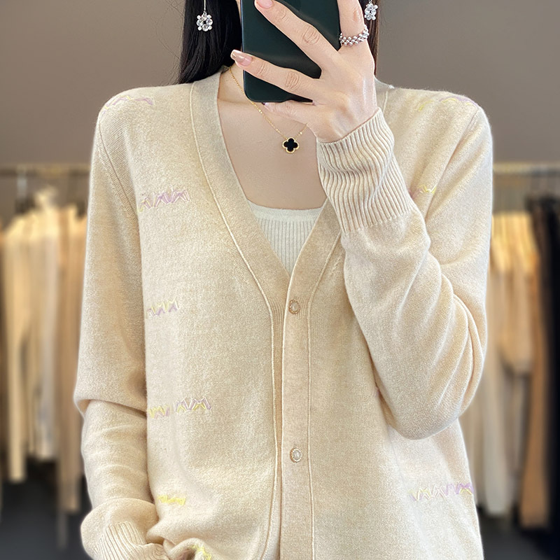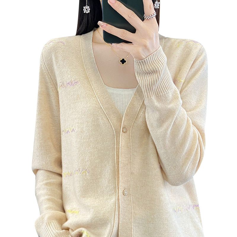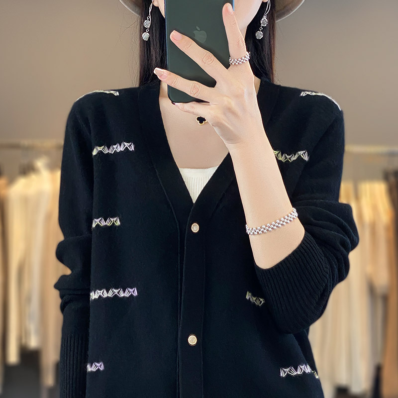 Autumn And Winter Fashion Beaded Wool Knitted Cardigan Female Temperament V-neck Small Fragrance Style Knitted Sweater Jacket Female