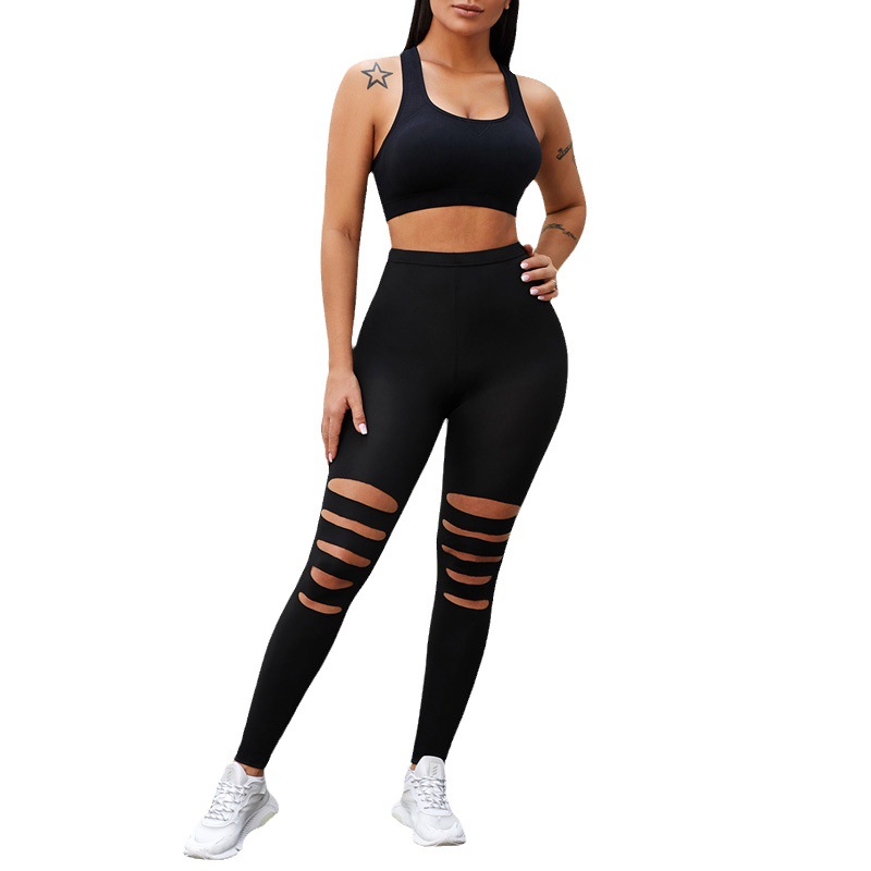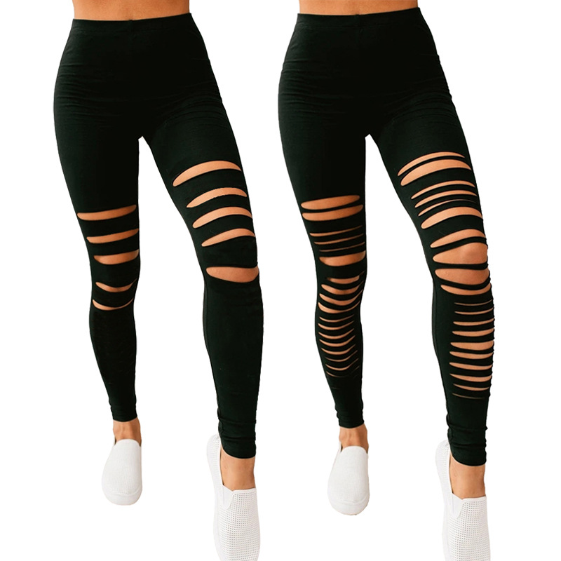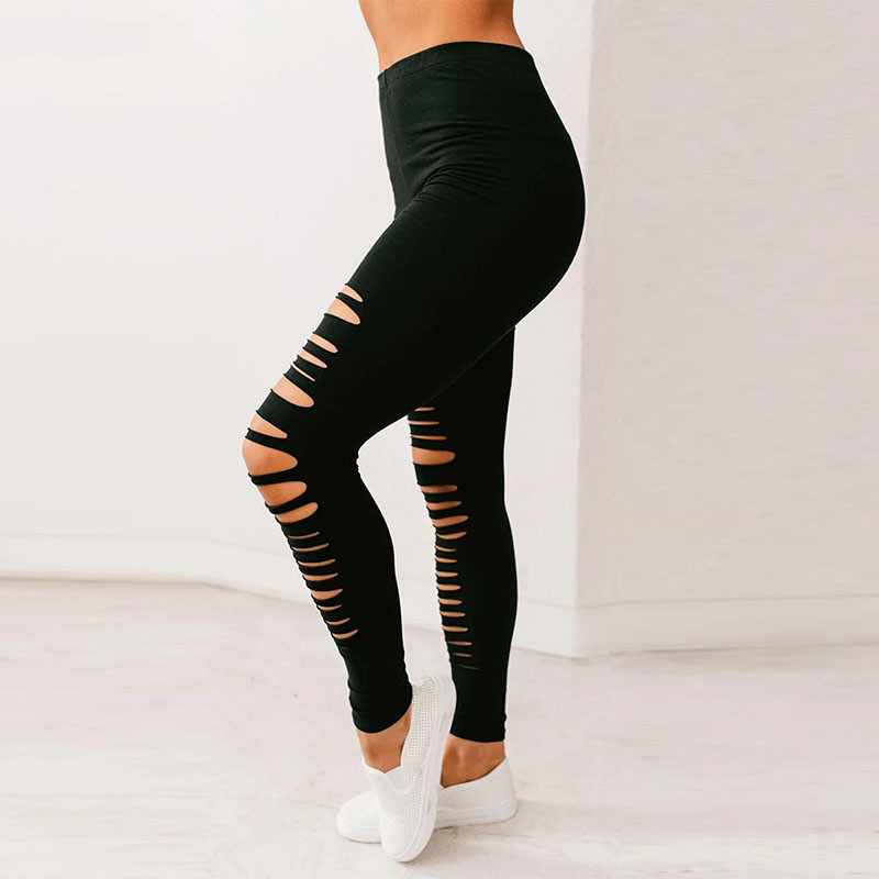 European And American Pure Color Simple Milk Silk Leggings Women's Tight Hole Yoga Pants