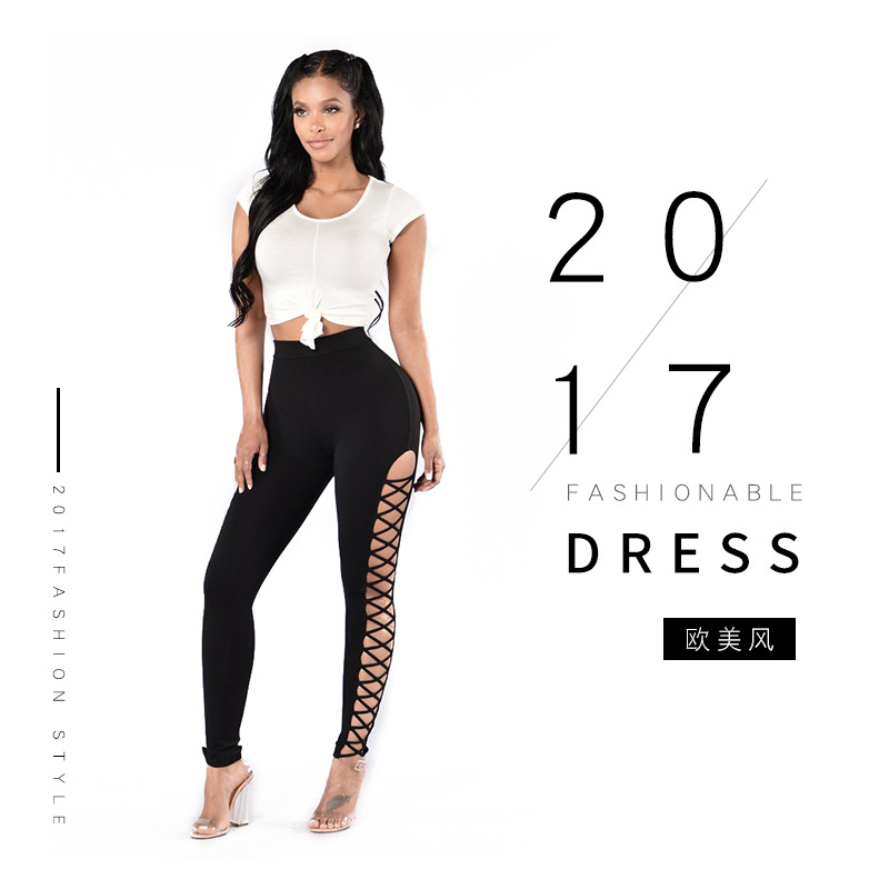 European And American Spring And Autumn Strap Nine-point Pants Side Cross Leggings Strap Ladies Out Of The Foot Pants