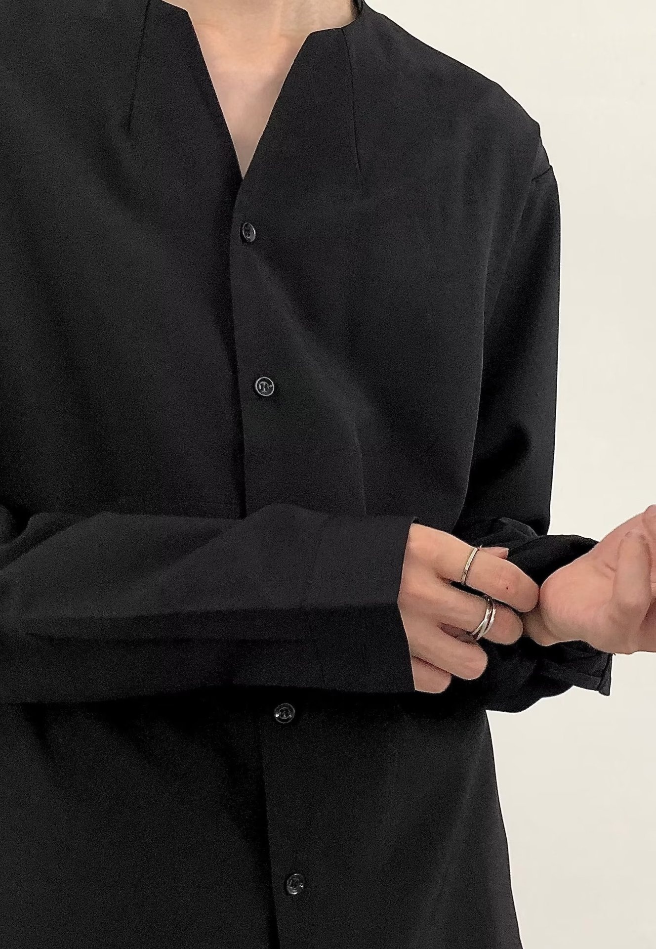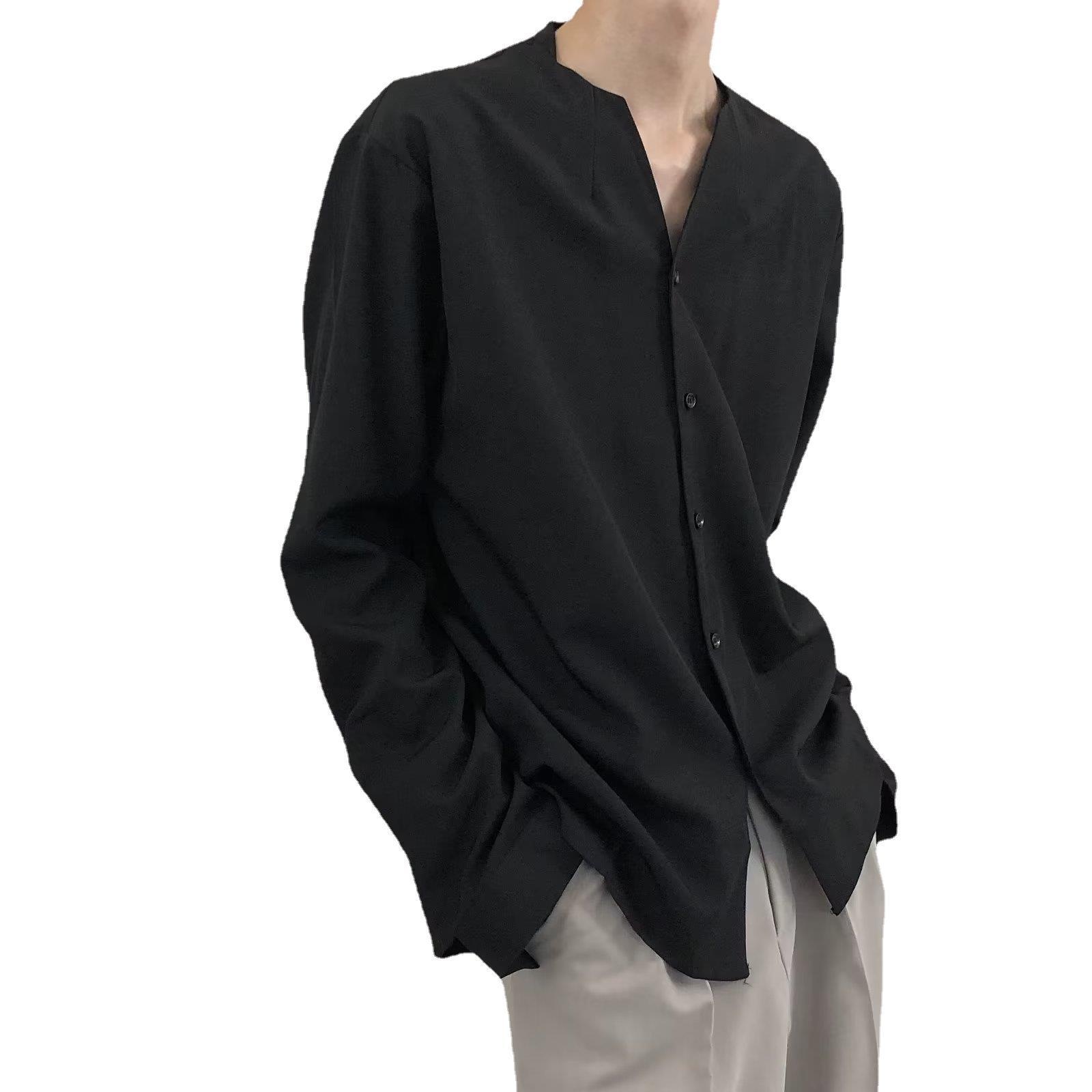Cold Style High-end Street Shirt Men's Design Niche V-neck Naples Shirt White Abstinence Men's Clothing