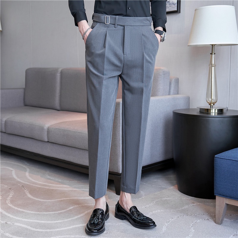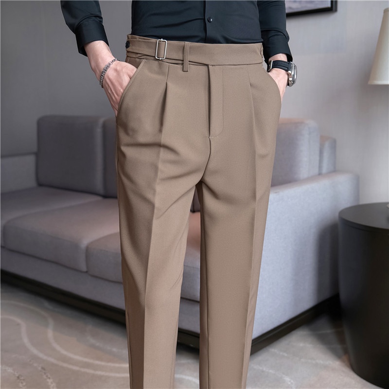 Naples Textured Trousers Men's Solid Color Business All-match Casual Pants Elastic Slim Trousers Foreign Trade