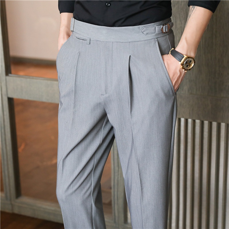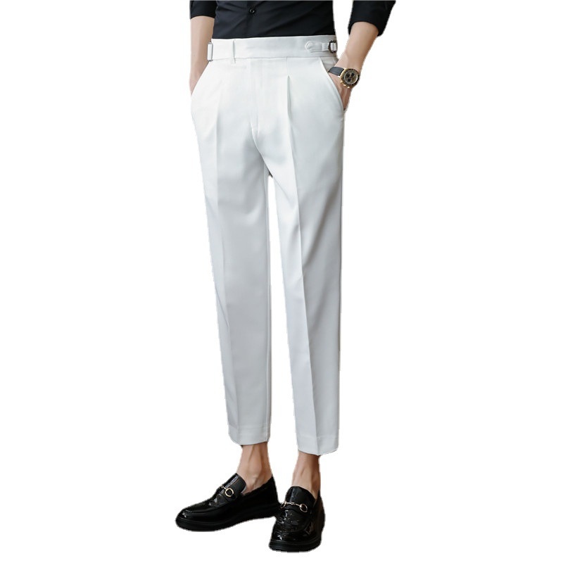 Naples Men's Casual Trousers Slim Fit Belt Decoration Drape Stylish Light Business Trousers