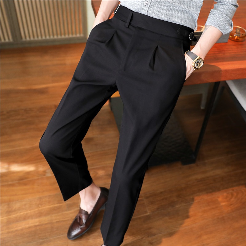 Foreign Trade Spring And Summer Naples Men's Suit Trousers Dark Gray High Waist Slim Drape Nine Points Small Suit Trousers Men