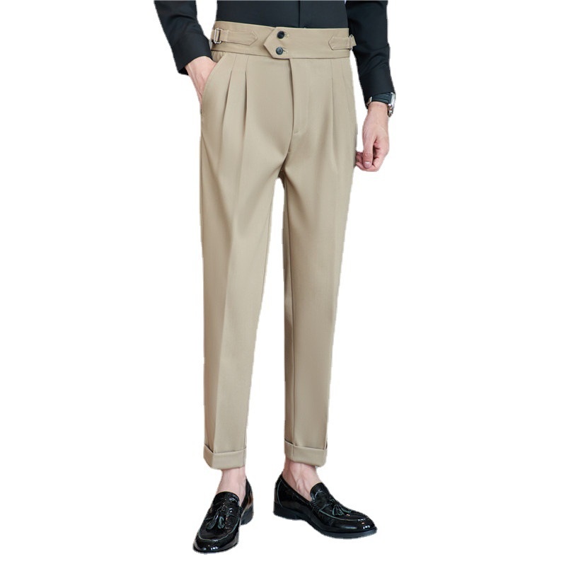 Naples Drape High Waist Men's Casual Pants Straight Light Business Curlingy Italian Men's Suit Trousers Trousers