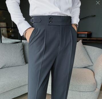 Casual Italian Retro High Waist Pants Men's Casual Straight Naples British Business Paris Buckle White Long Trousers