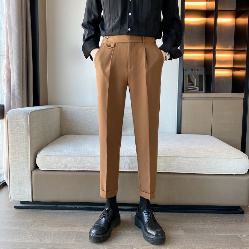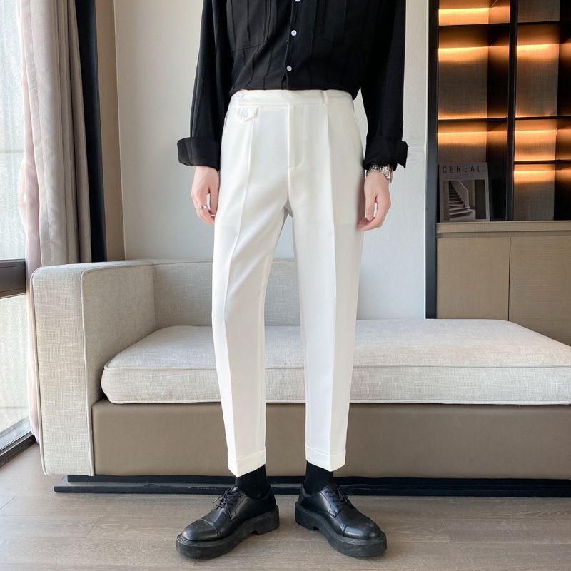 Casual Mid-high Waist Suit Pants Men Spring And Summer Men's Business Drape Long Pants Straight Iron-free Naples Suit Pants
