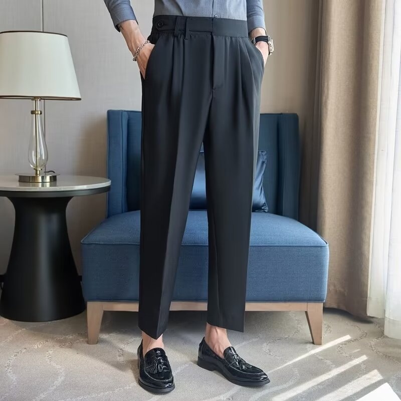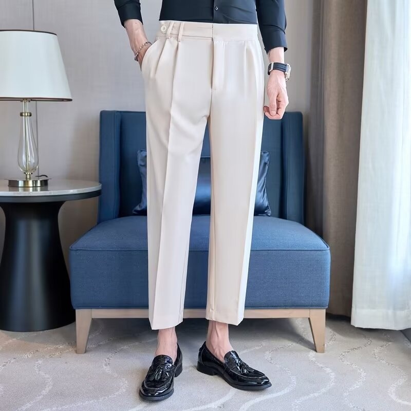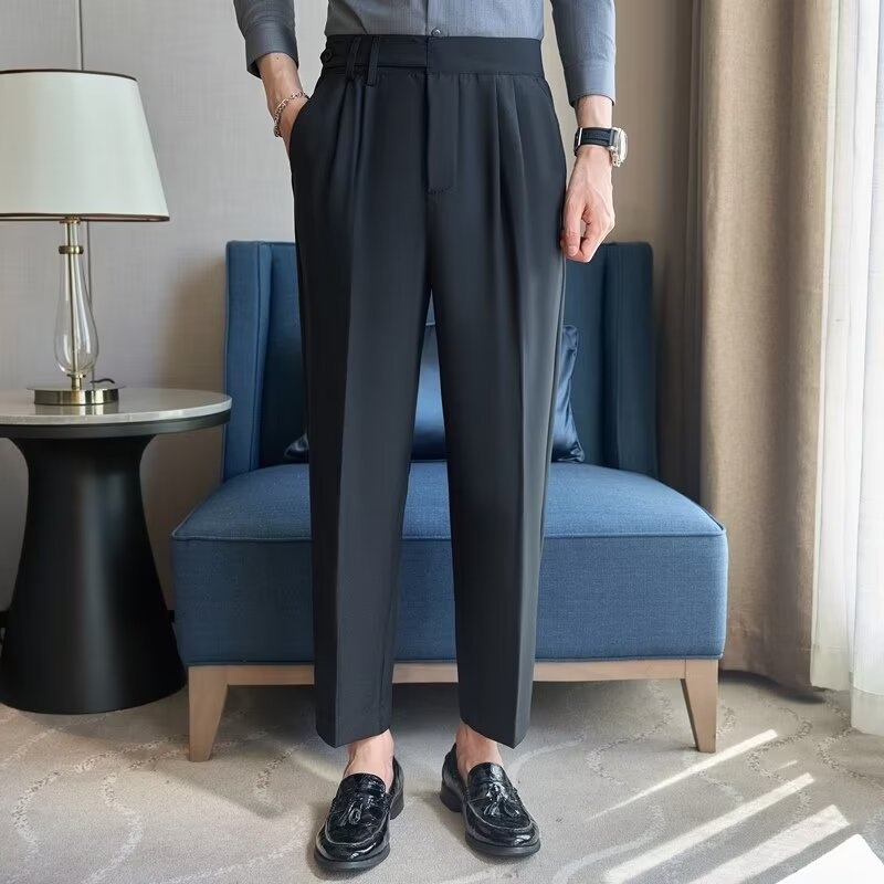 Men's Casual Suit Trousers Spring And Autumn Style Naples Drape Straight Nine-point Suit Trousers Slim High Waist Suit Trousers