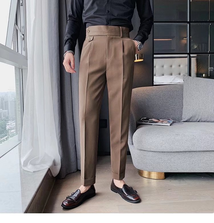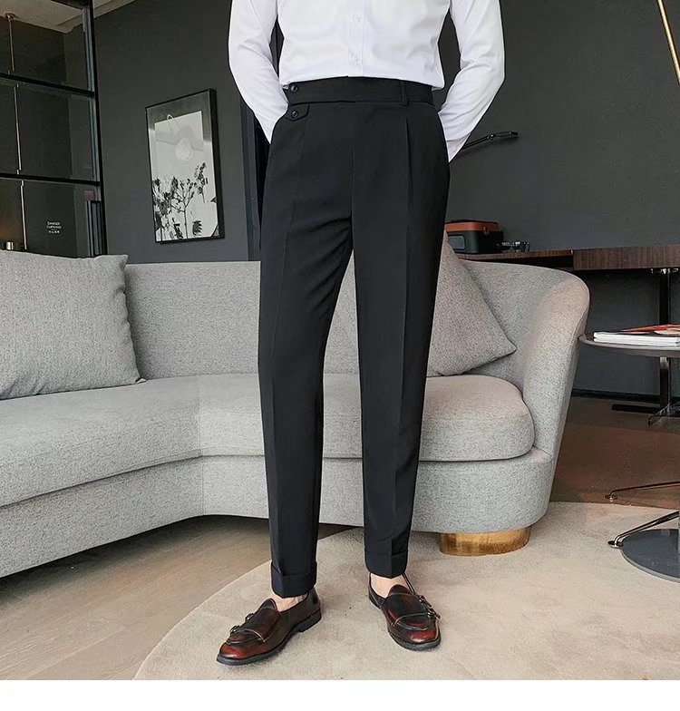 Men's Suit Pants Naples Straight Casual Small Suit Pants Spring And Autumn High Waist Italian Paris Buckle Trousers
