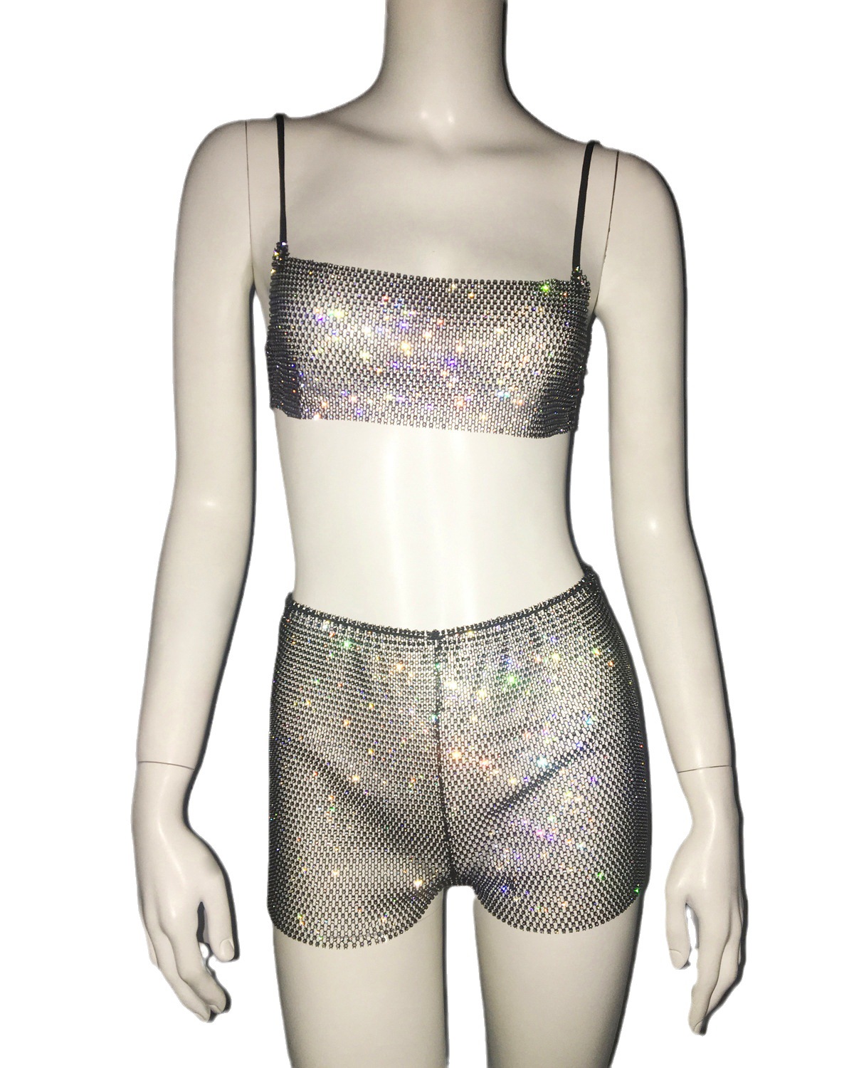 European And American Rhinestone Suspender Shorts Hot Girl Suit Music Festival Wear Suspender Top Shorts