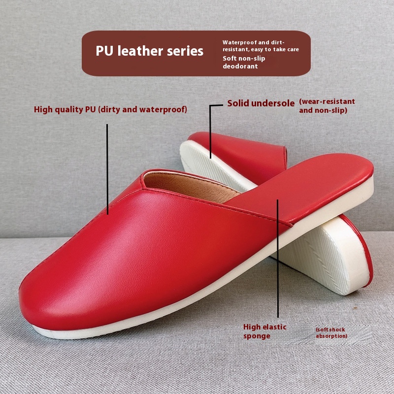 Japanese Style Haining Leather Slippers For Home Use In Spring And Autumn For Men And Women, Anti-slip Couples, Home Can Be Leather Slippers