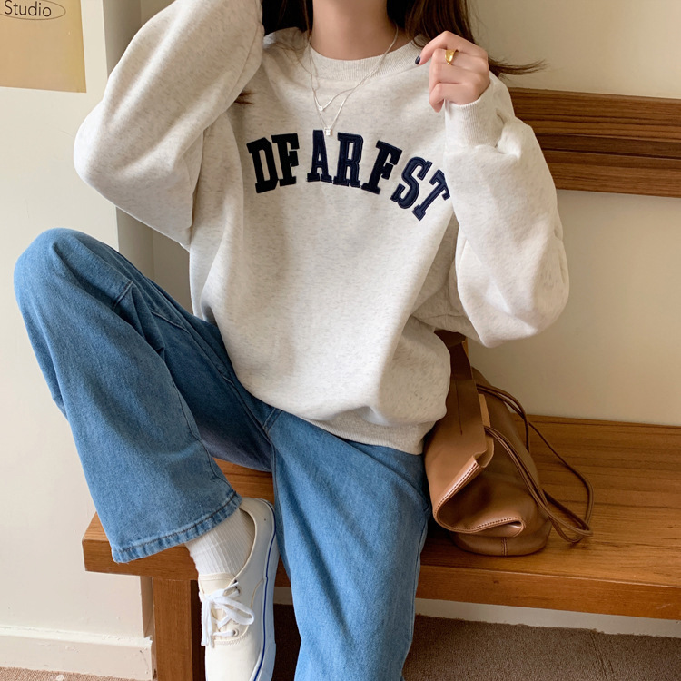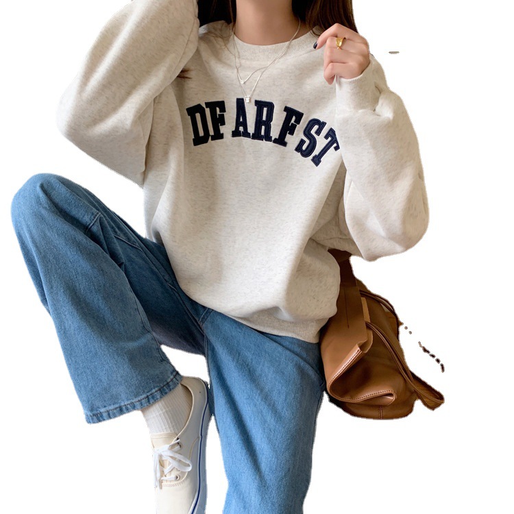 Round Neck Embroidered Letters Sweatshirt Women Spring And Autumn Loose Long-sleeved Tops Thin Sweatshirt Women Foreign Trade