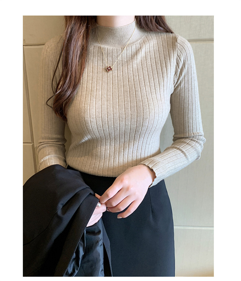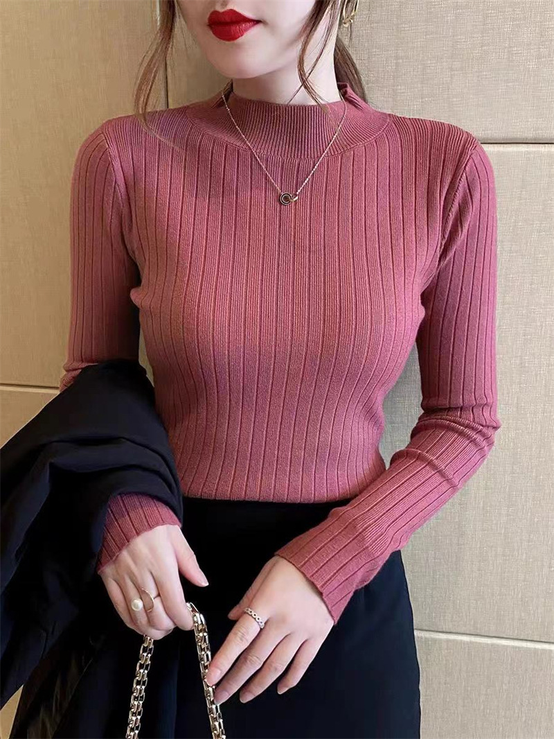 Autumn And Winter Knitted Sweater For Women,Half Turtleneck Solid Color Bottoming Shirt,Inner Wear And Outer Wear,Fashionable Mid-neck Long-sleeved Top