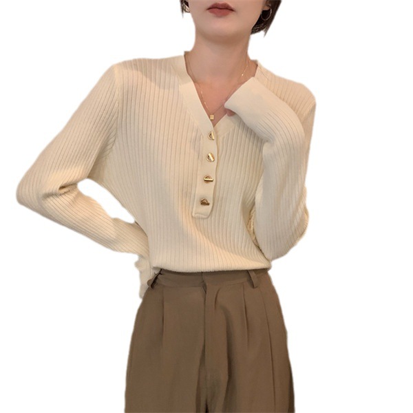 V-neck Bottoming Shirt For Women Autumn And Winter Autumn Wear High-end French Style Slim Fit Inner Sweater Knitted Sweater Top