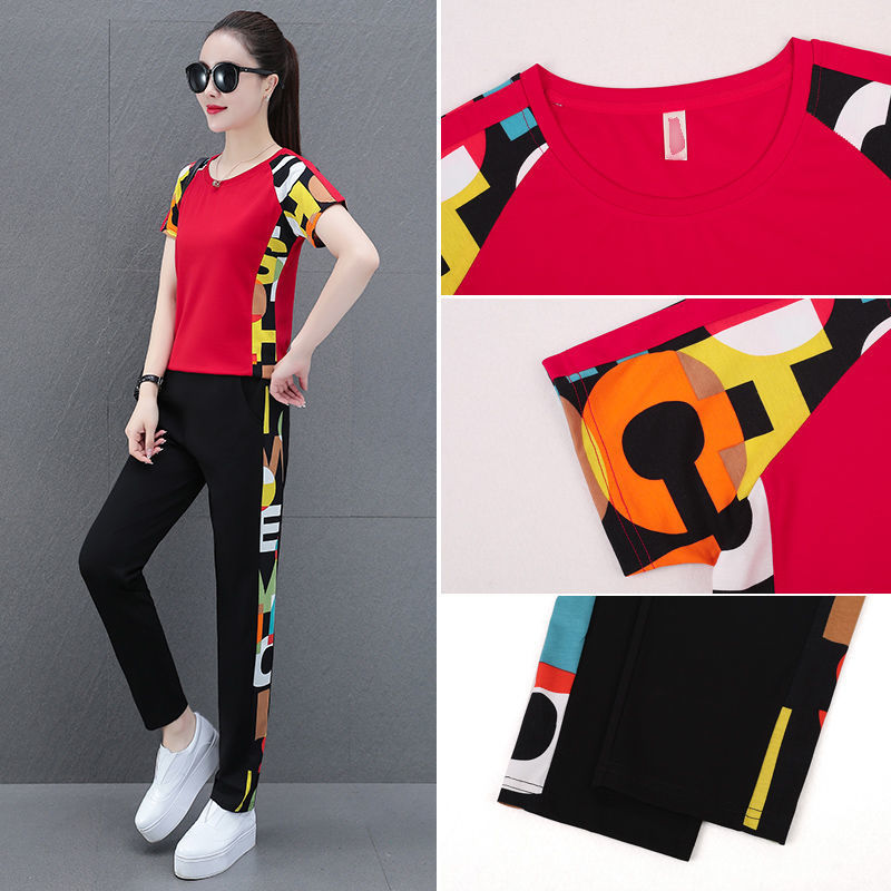 Summer Sports Suit For Women With Letter Print Short-sleeved Two-piece Suit,Fashionable And Age-reducing,Casual Wear For Women