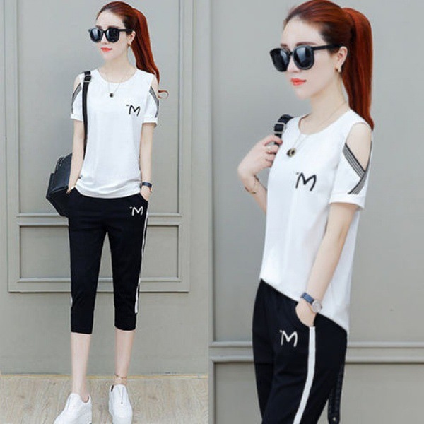 Sports Suits For Women Summer Loose Short-sleeved Off-shoulder Cropped Pants Casual Large Size Two-piece Suit Foreign Trade