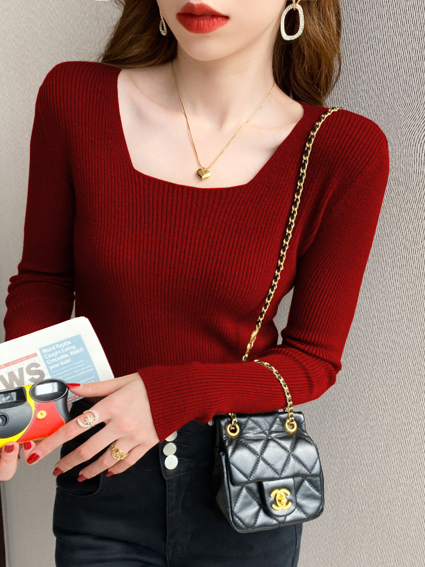 French Square Neck Knitted Bottoming Shirt For Women Spring Style Fashion Slim Fit Topsy Foreign Trade