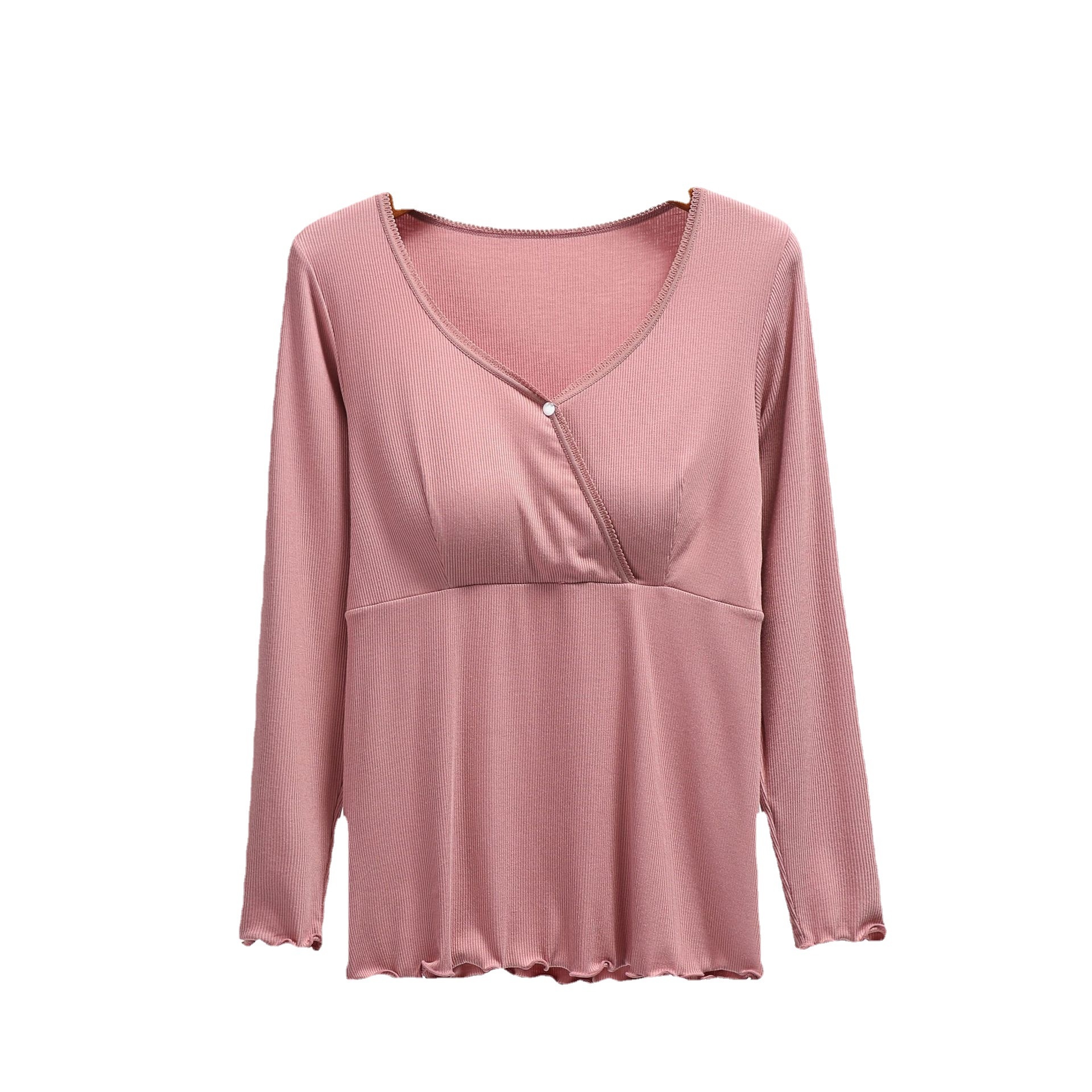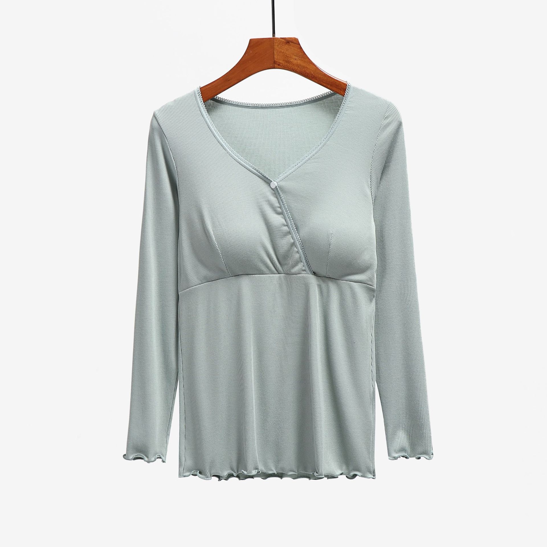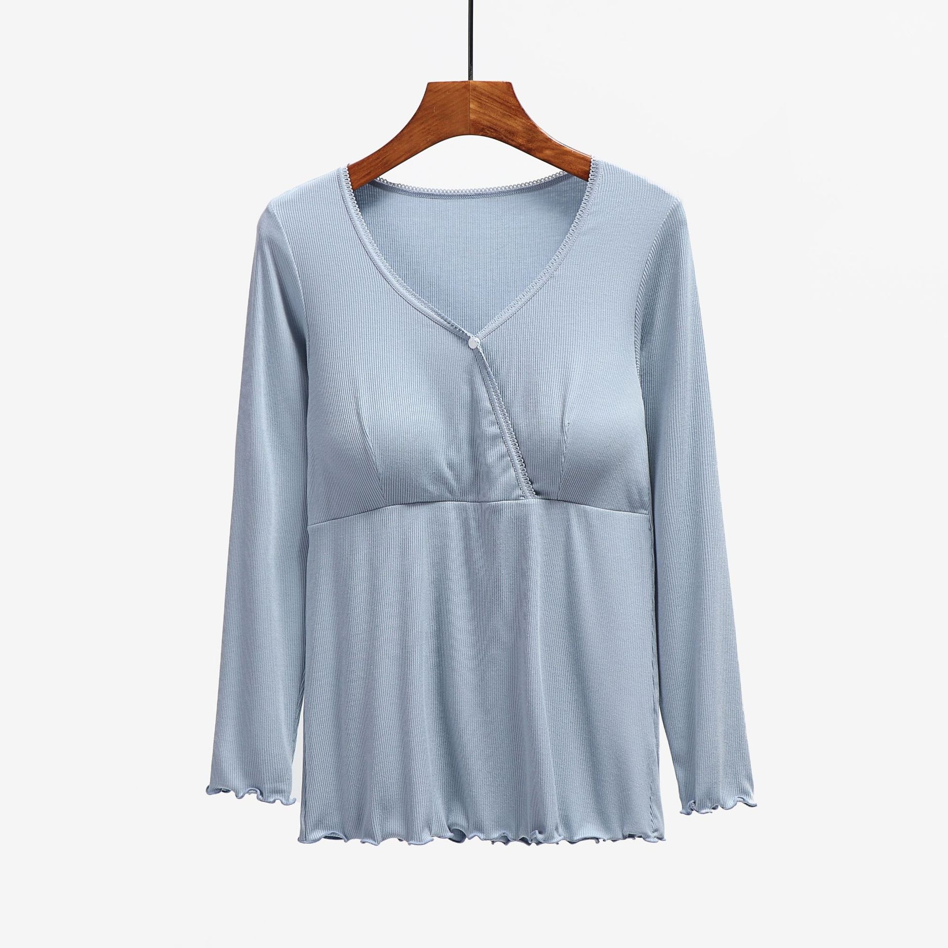 Ready Stock Pregnant Women Postpartum Cross-feeding Long-sleeved Nursing Clothes Thin Confinement Clothes Home Clothes Summer