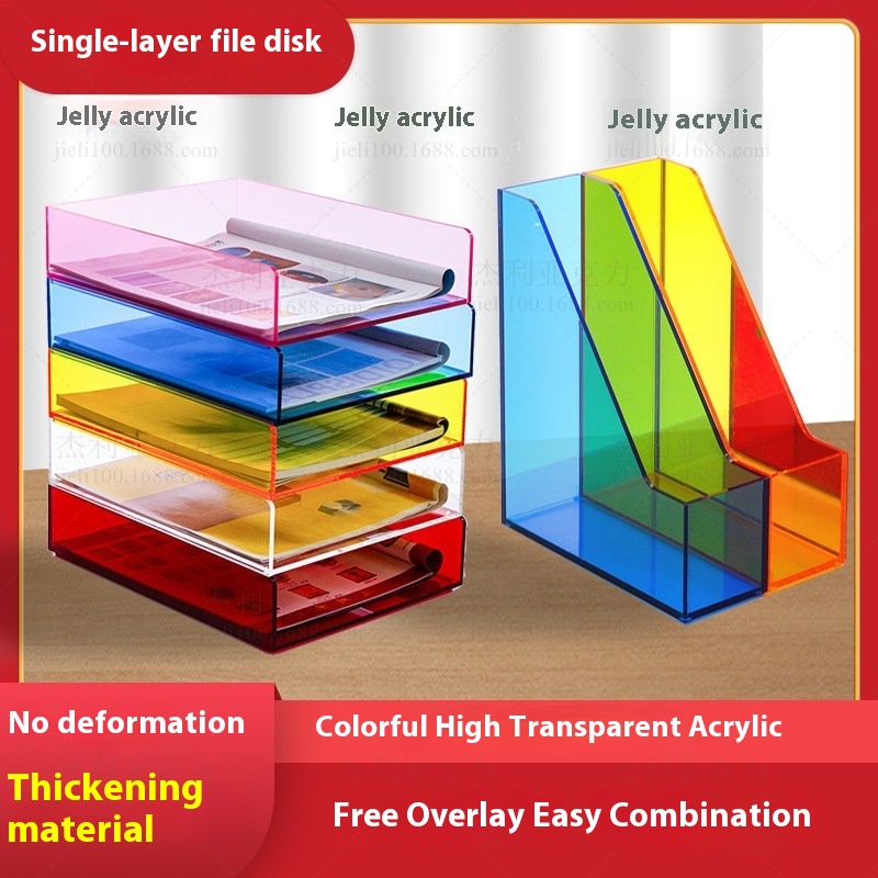 Thickened Acrylic File Rack Layered Foldable Office Desk Storage A4 Single Layer Color File Tray Information Rack