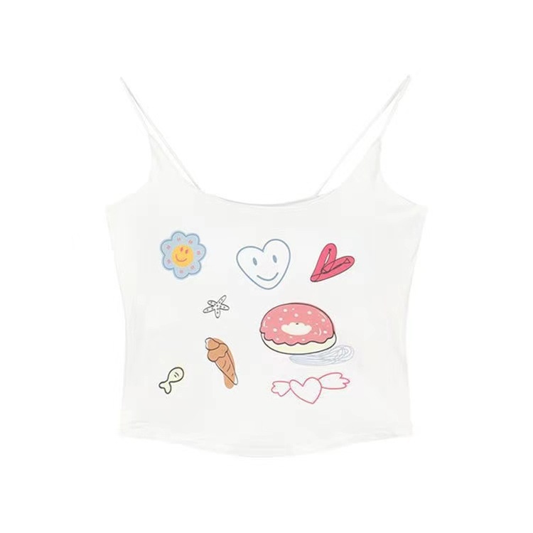 Style Beautiful Back Graffiti Camisole Vest For Women With Printed Chest Pads For Inner Wear And Outer Wear,Wrapped Chest Tube Top For Hot Girls Short Top