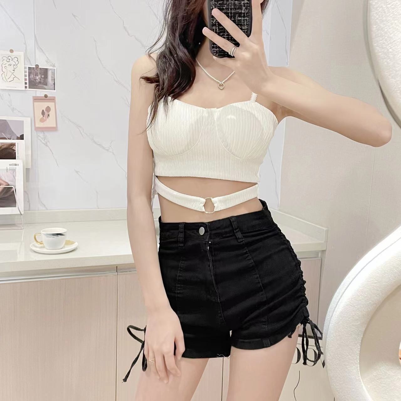 All-match Suspenders For Women,Hollow Irregular Sexy Back Tube Top,Slim Fit,Inner Wear And Outer Wear,Hot Girl Top