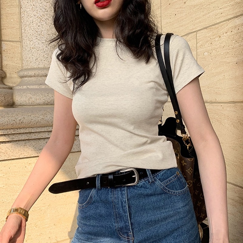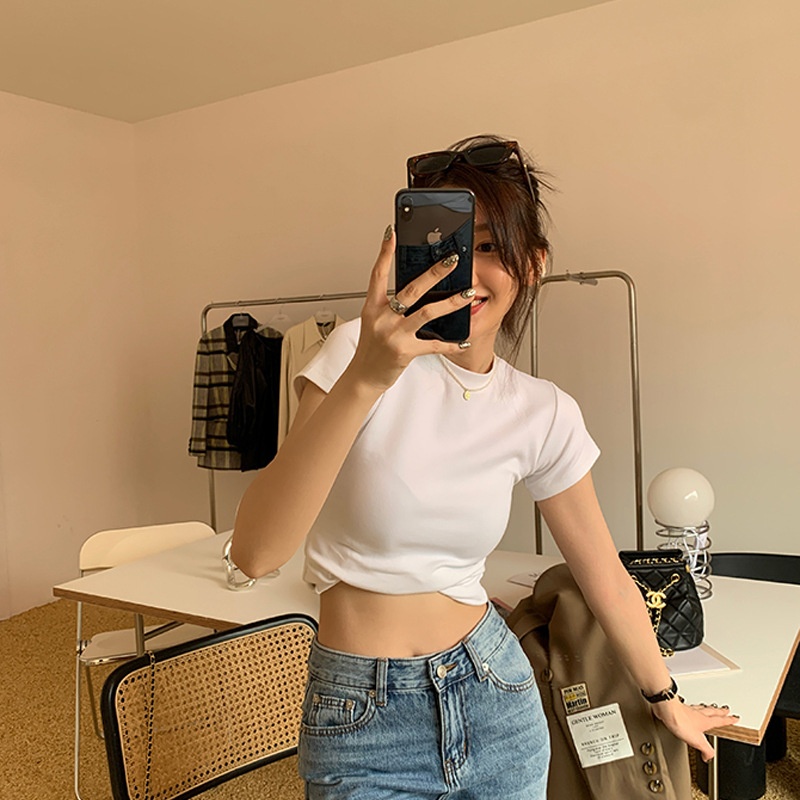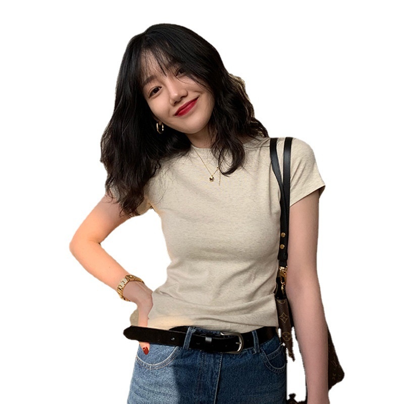 Pure Cotton White Short-sleeved T-shirt Women's Summer Casual All-match Topsy T-shirt Slim Fit Short Bottoming Shirt