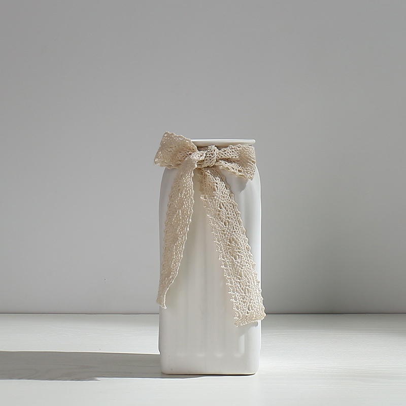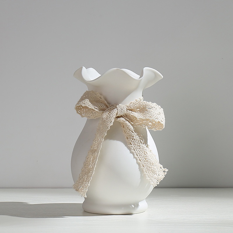 Literary White Small Fresh Dried Flower Vase Ceramic Hydroponic Flower Arrangement Baby's Breath Living Room Modern Ornaments Decoration