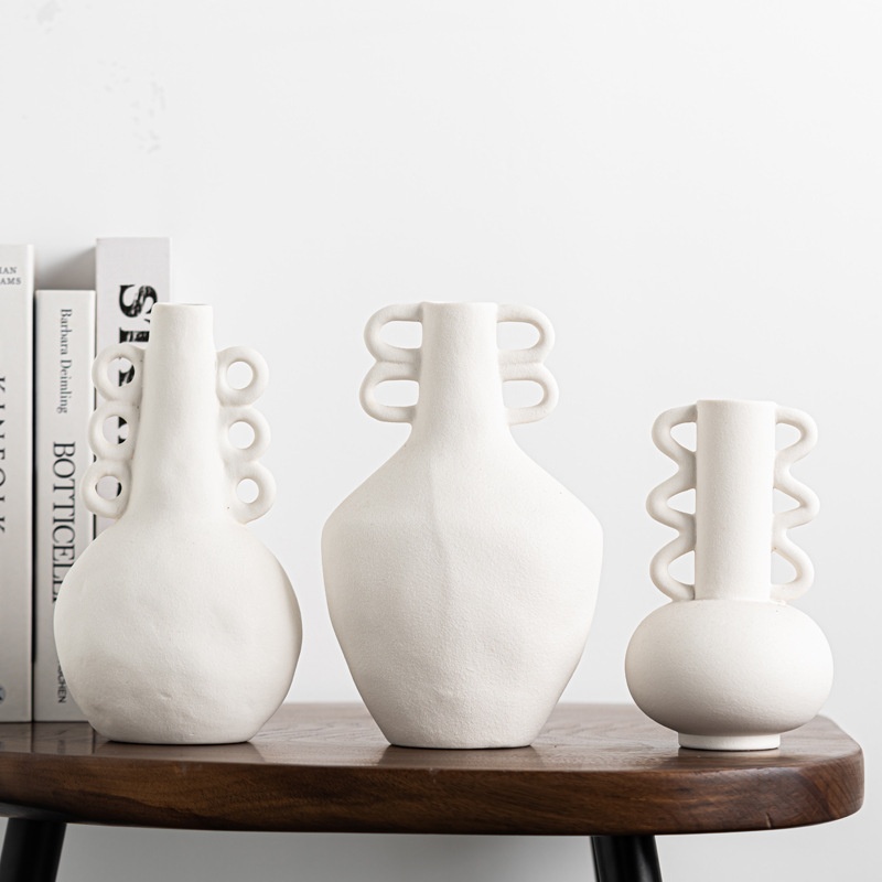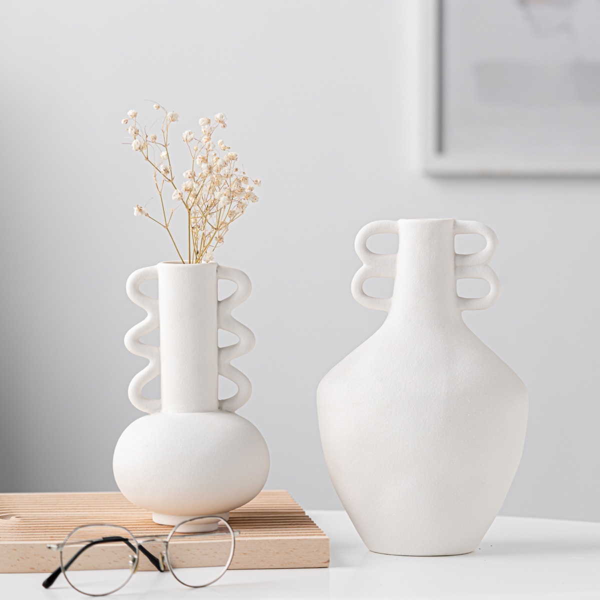 Modison Nordic Home Desktop Decoration Crafts Holiday Gifts Long Neck Ripple Creative Ceramic Vase Ornaments