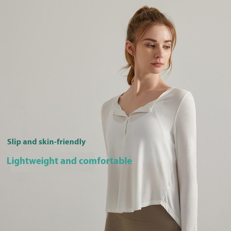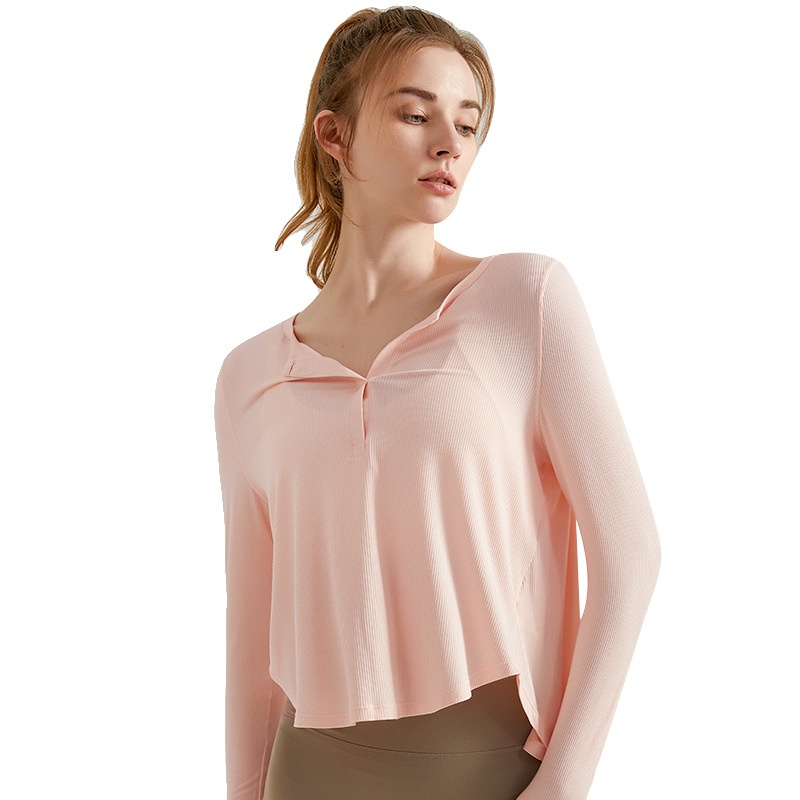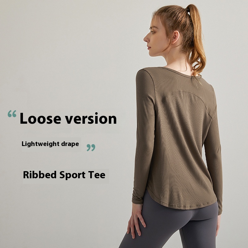 Autumn Yoga Clothes Tops Long Sleeves Loose Quick Drying Breathable Threaded Fabric Running Fitness Outerwear Yoga Cover Up Women